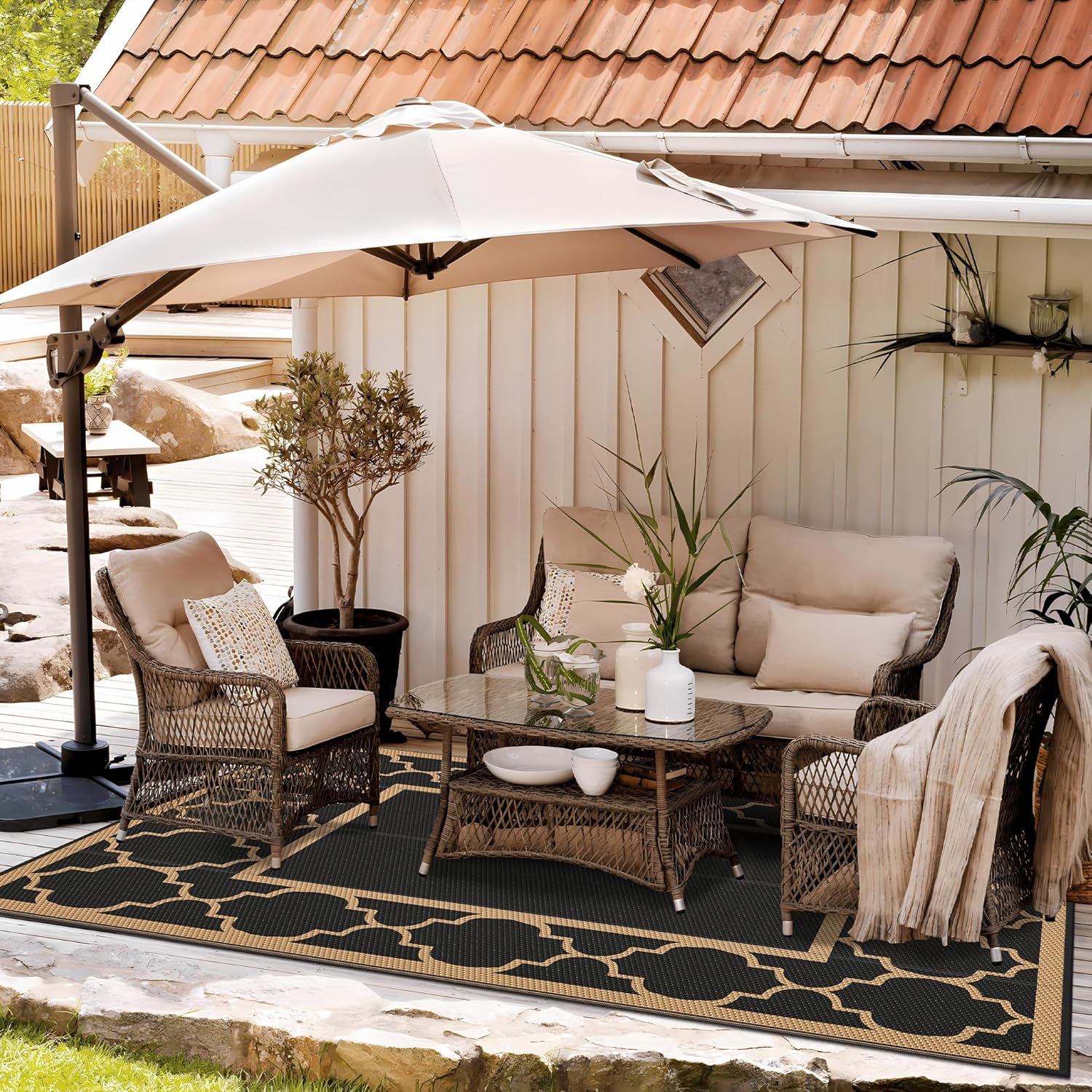 - Upgraded Materials & Reversible Use:GENIMO's outdoor plastic straw rug, crafted from recyclable polypropylene, features eye-catching patterns and is fully reversible. Waterproof and durable, it's an ideal choice for patios and outdoor relaxation, especially as part of your camping essentials. Thanks to the upgraded weaving process, whether used on one side or the other, it seamlessly integrates with the outdoor environment, bringing joyful moments.Also perfect as a fall outdoor rug