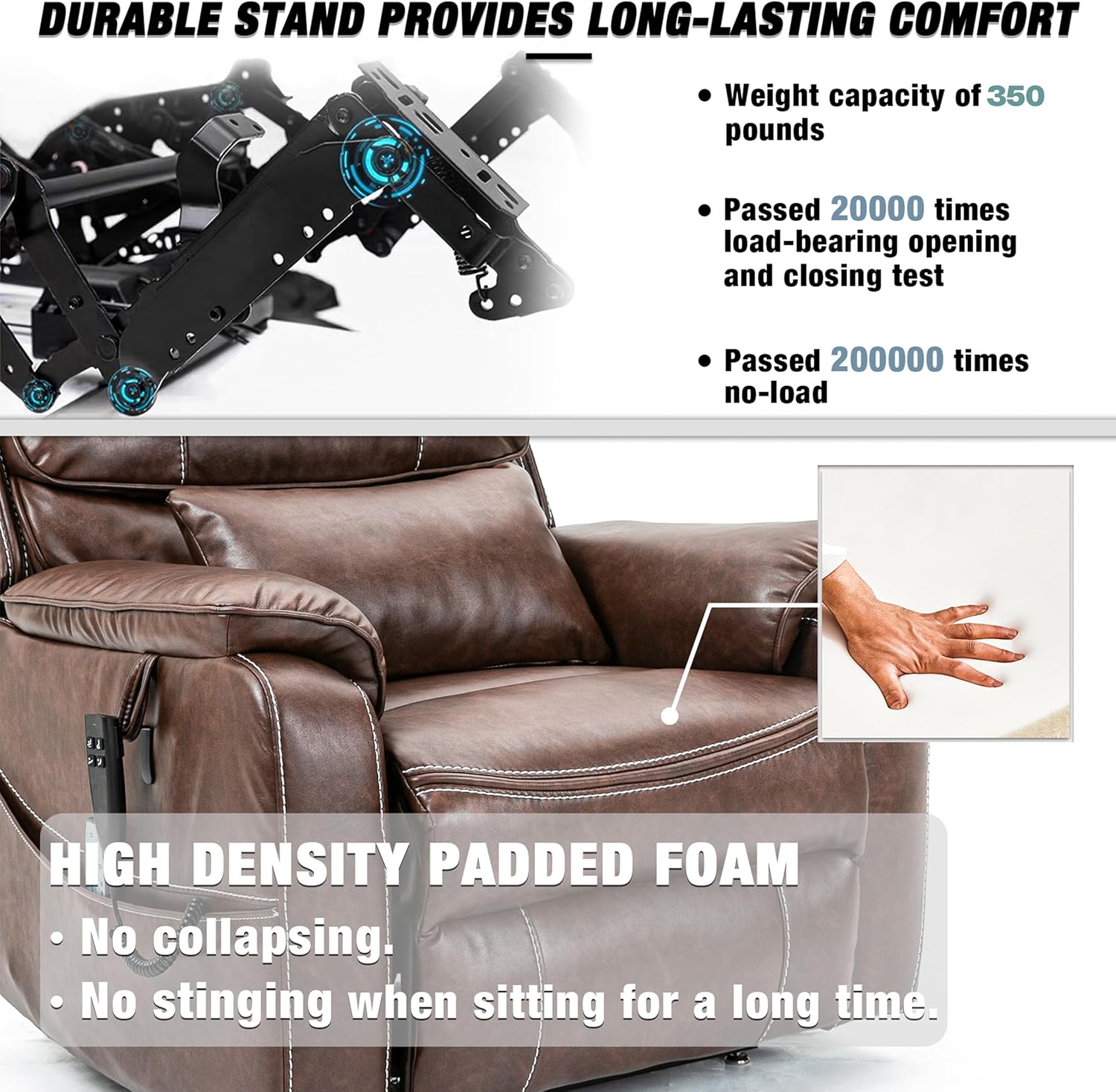 - 【Sturdy-Material】Our power lift recliner chair for elderly is made of upgraded chenille, which is soft, anti-pilling, and anti-fuzzing, and easy to clean. The entire cushion is filled with high-density sponge, which will not collapse after sitting for a long time. The bottom is supported by independent unit springs, The thickened German OKIN alloy steel bracket ensures that it can withstand a weight of 350 pounds and can still operate stably or assist in standing without any shaking.