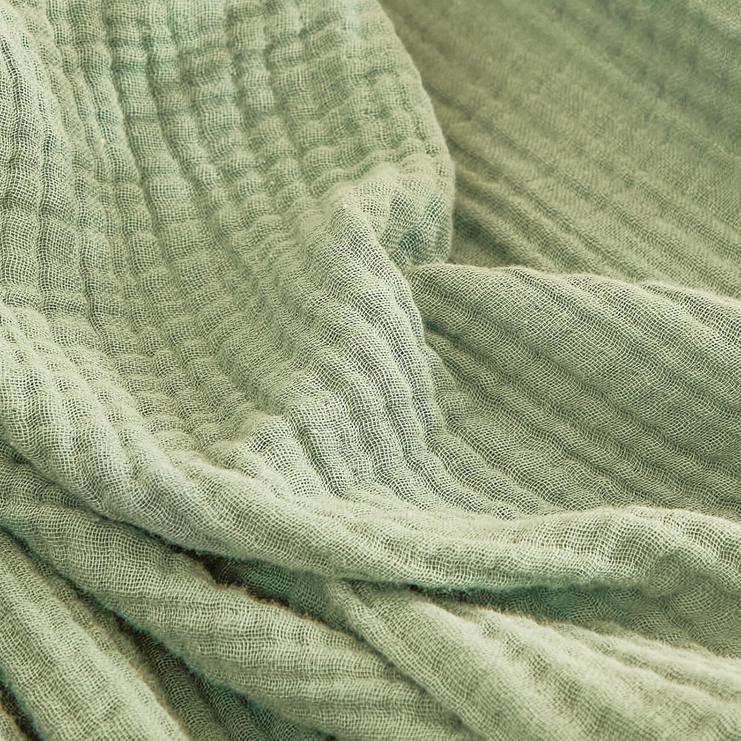 EMME Cotton Muslin Blanket King Size - Soft, Breathable Layering Blanket, 108"x90", All Season Gauze, Sage Green