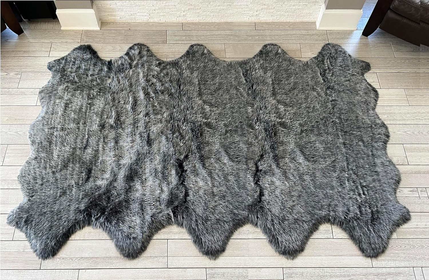 LAMBZY Faux Sheepskin Super Soft Hypoallergenic Free Shape Silky Shag Rug, Luxury Shaggy Silky Plush Carpet for Bedrooms Living Kids Room Sofa Rugs (Black with White Tips, Decto 10 Pelts 6'x10')