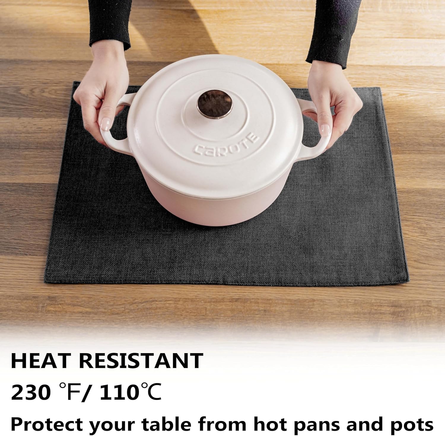 Demetex Cloth Placemats Set of 6 Black Stain Resistant Place Mats Oil Proof Washable Plate Mats for Dining Table Holiday Cafe Banquet, Black