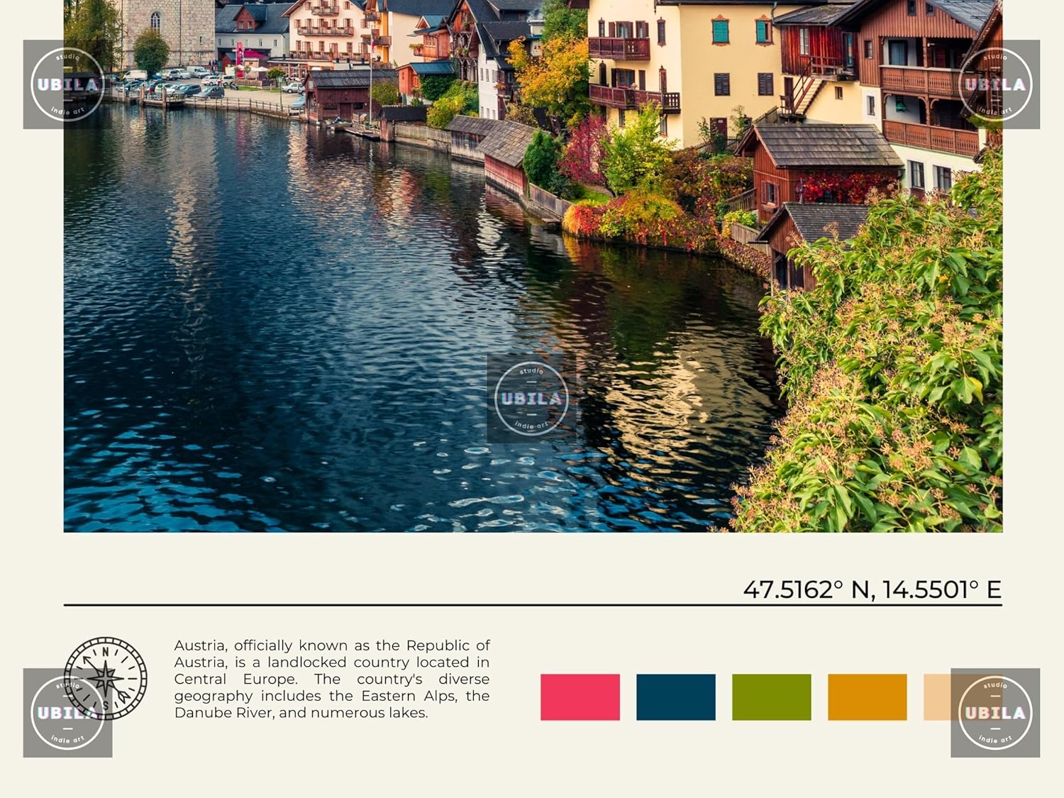 StudioUBILA Austria Wall Art Poster, Decorative Cityscape Landscape Art Prints, Home Decor Wall Art Print for Bedroom Living Room Kitchen Decorations, Unframed