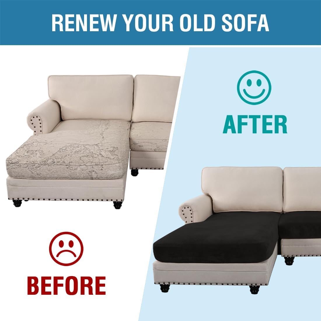 - INCREDIBLY COMFORTABLE VELVET: Products passed GLOBAL RECYCLED STANDARD certificate.This innovated stretch sofa slipcovers are constructed with 4 PIECES,including 1 Chaise cover and 3 individual cushion covers. Crafted from luxurious velvet plush fabric, feature thick, soft, smooth, anti-wrinkle, no fading, durable as well as highly stretch. Protect your cushion furniture from daily wears and tears, stains, kids, scratches from pet claws, dogs or accidental spills