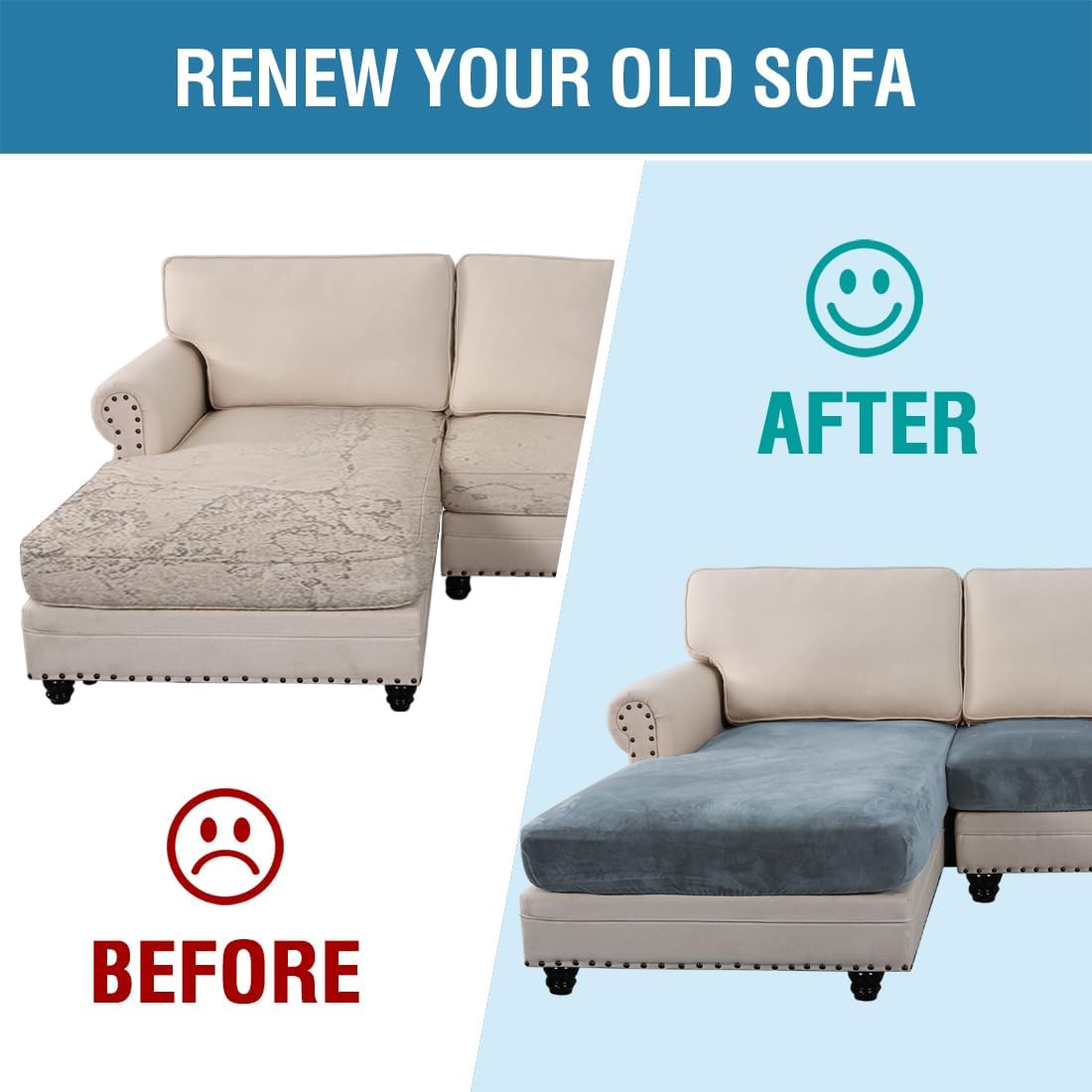 - INCREDIBLY COMFORTABLE VELVET: Products passed GLOBAL RECYCLED STANDARD certificate.This innovated stretch sofa slipcovers are constructed with 4 PIECES,including 1 Chaise cover and 3 individual cushion covers. Crafted from luxurious velvet plush fabric, feature thick, soft, smooth, anti-wrinkle, no fading, durable as well as highly stretch. Protect your cushion furniture from daily wears and tears, stains, kids, scratches from pet claws, dogs or accidental spills