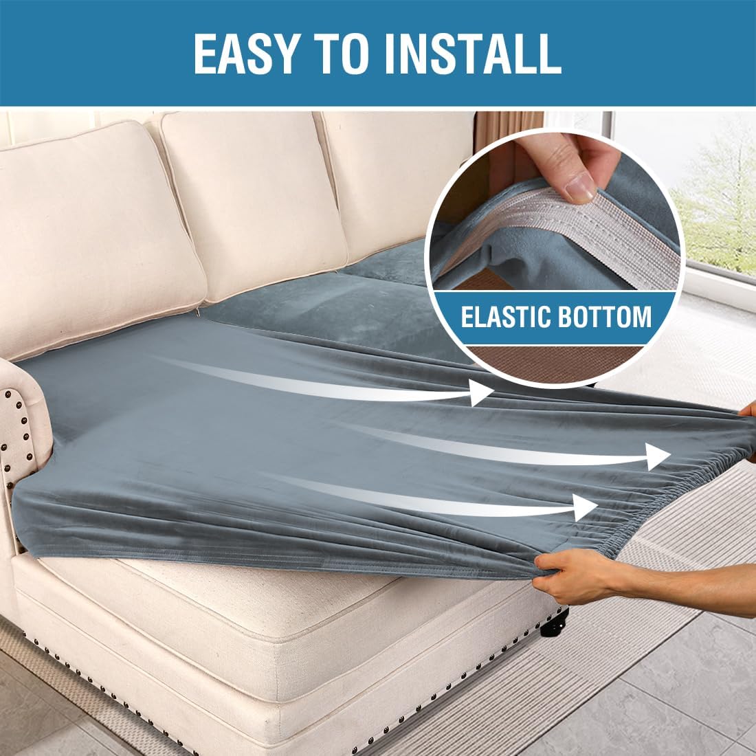 - STAY IN PLACE: Featuring non-skid thick elastic bottom, our cushion slipcover can stay tight with no snag, no wrinkling, shifting or slipping on both leather and cloth sofa. Check the installation guide carefully, it can be finished within 3 minutes by one person. It is very easy to put on and take down. (Installation Instructions Included)