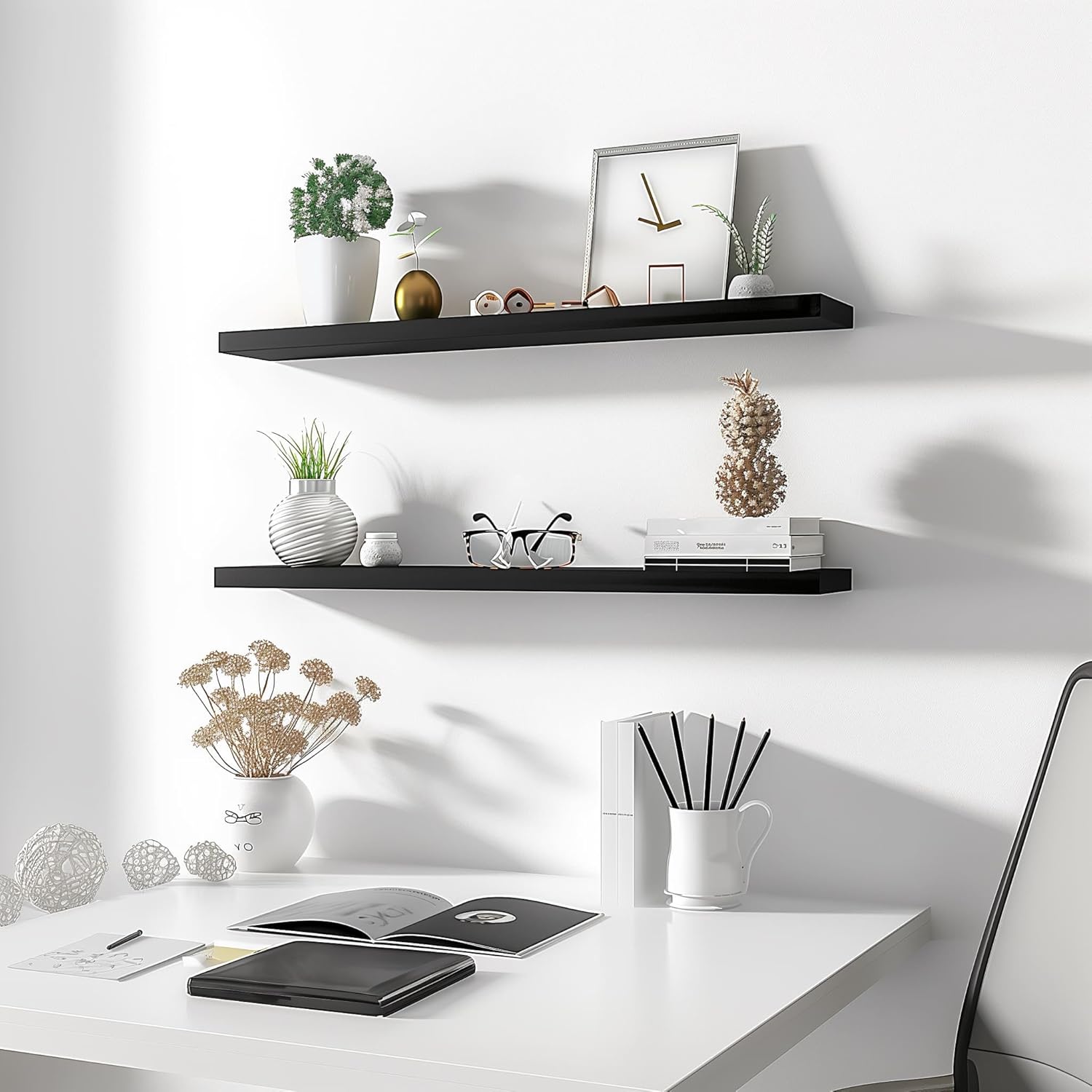 Wood Floating Shelves for Wall Decor, Rustic Wall Shelves for Bedroom Bathroom Kitchen Living Room, Set of 4 Black 36 Inch