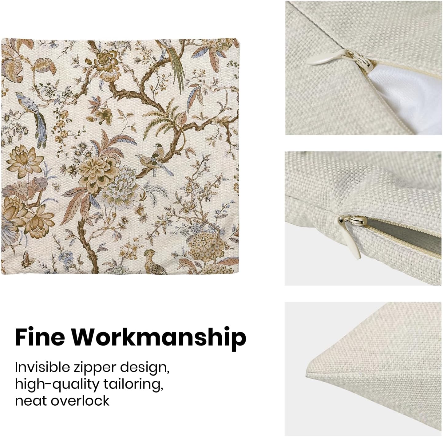 - 【Spring Pillow Covers】 Our Chinoiserie floral throw pillow covers 16x16 inch are made of excellent breathable polyester cotton fabric. The brown and white floral decorative pillow covers is durable, soft and skin-friendly. The plant outdoor pillow covers adopt exquisite edging technology and four sides of our floral pillow covers are sewn firmly, which is not easy to open the line.