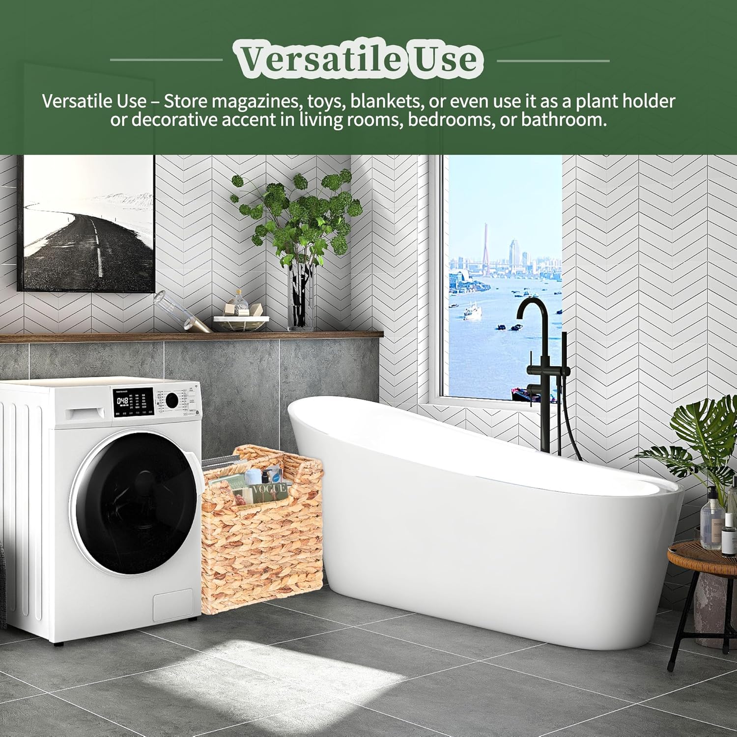 - Natural & Sustainable Material - Crafted from durable water hyacinth, this eco-friendly magazine rack adds a touch of nature to your home decor. The magazine holder is suitable for home, office, and the environmental benefits of the magazine basket are appreciated.