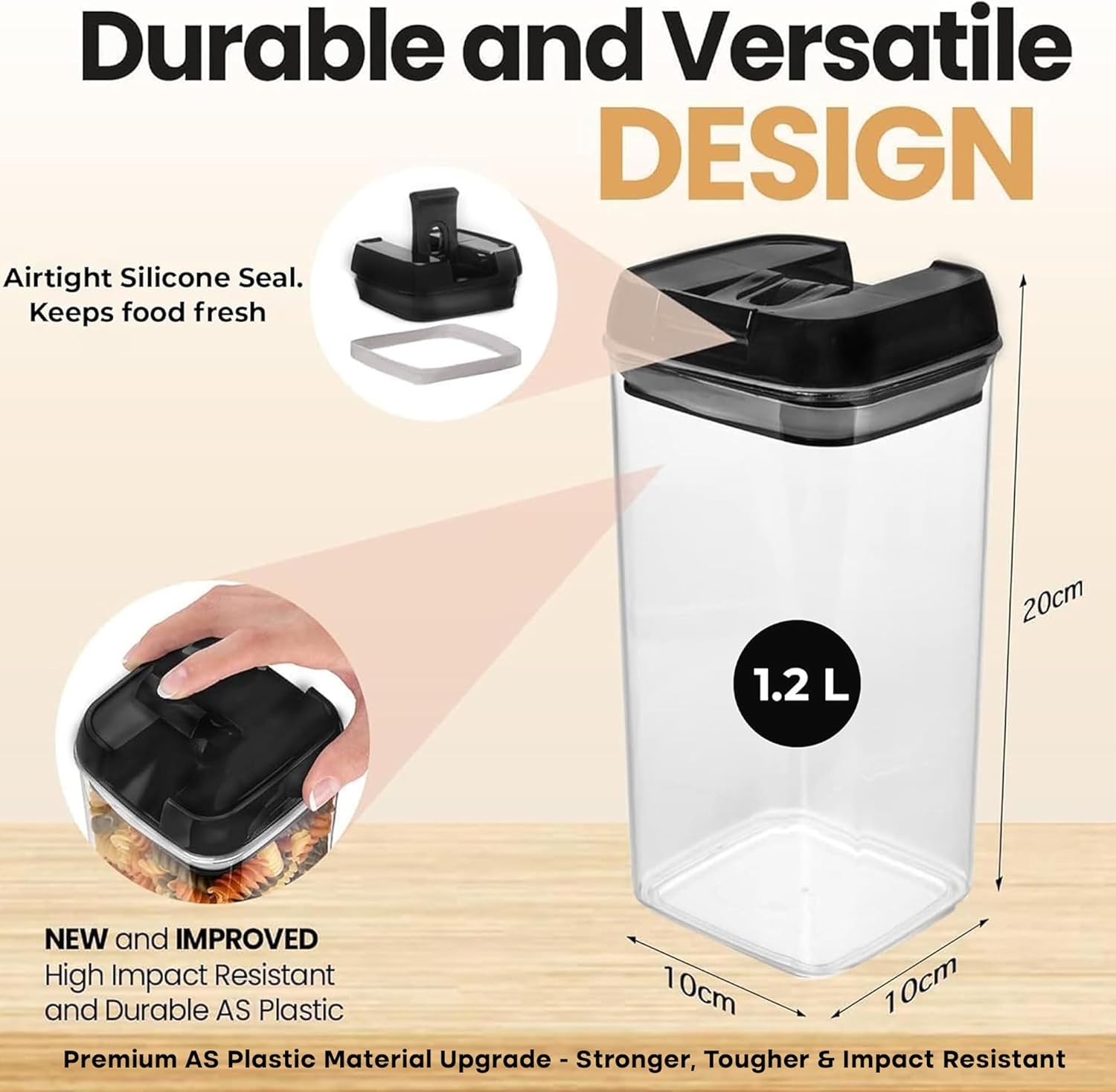 - 【 AIRTIGHT LOCKING LIDS MAINTAIN FRESHNESS 】 Our airtight food storage containers feature flip top silicon sealed locking lids that maintain freshness and prevent leaks. These cereal containers create a complete airtight seal when the ring is pushed down, keeping your food dry and fresh for longer. Preserve the flavors and nutrition of your food, you can confidently store even liquid foods like oil, soups without worries. Ideal for air tight pantry storage containers.
