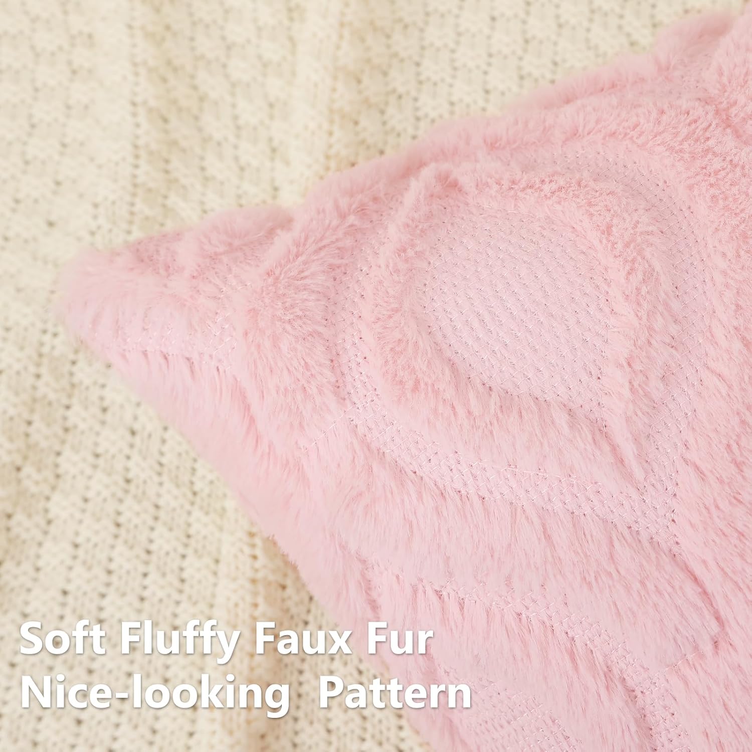 decorUhome Throw Pillow Covers 18x18 Inch Set of 2, Soft Plush Decorative Faux Fur Light Pink Solid Couch Pillow Covers, Accent Farmhouse Neutral Square Euro Pillow Cases for Sofa Bed Living Room