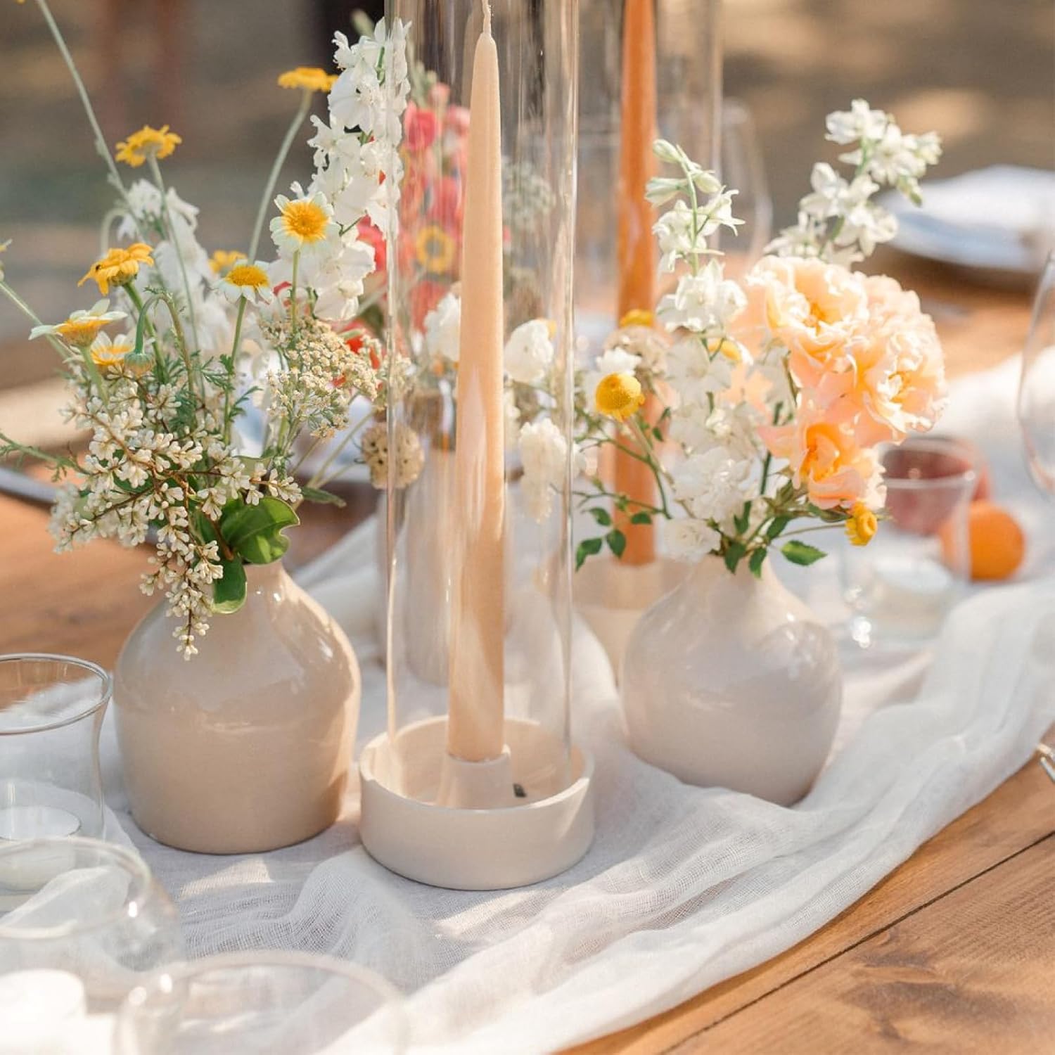 - 【Diversified Use】Boho cheesecloth Table Runner is necessary choice for beautifying tables. It's used for home decor, outdoor events, formal and informal setting in all seasons. Such as wedding decor, baby shower, bridal showers, parties, engagement banquet, Valentine's Day, Thanksgiving, Christmas.