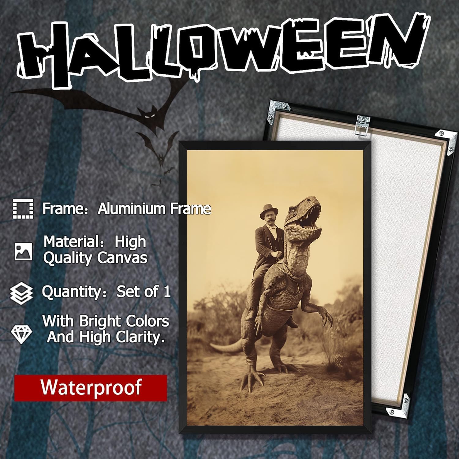 Goth Decor Antiqued Wicca Art Poster Dark Academy Dinosaur And Cowboy Canvas Wall Art Horror Posters Spooky Indoor Art Family Bedroom Office Space Decor 24X36inch Aluminum Framed