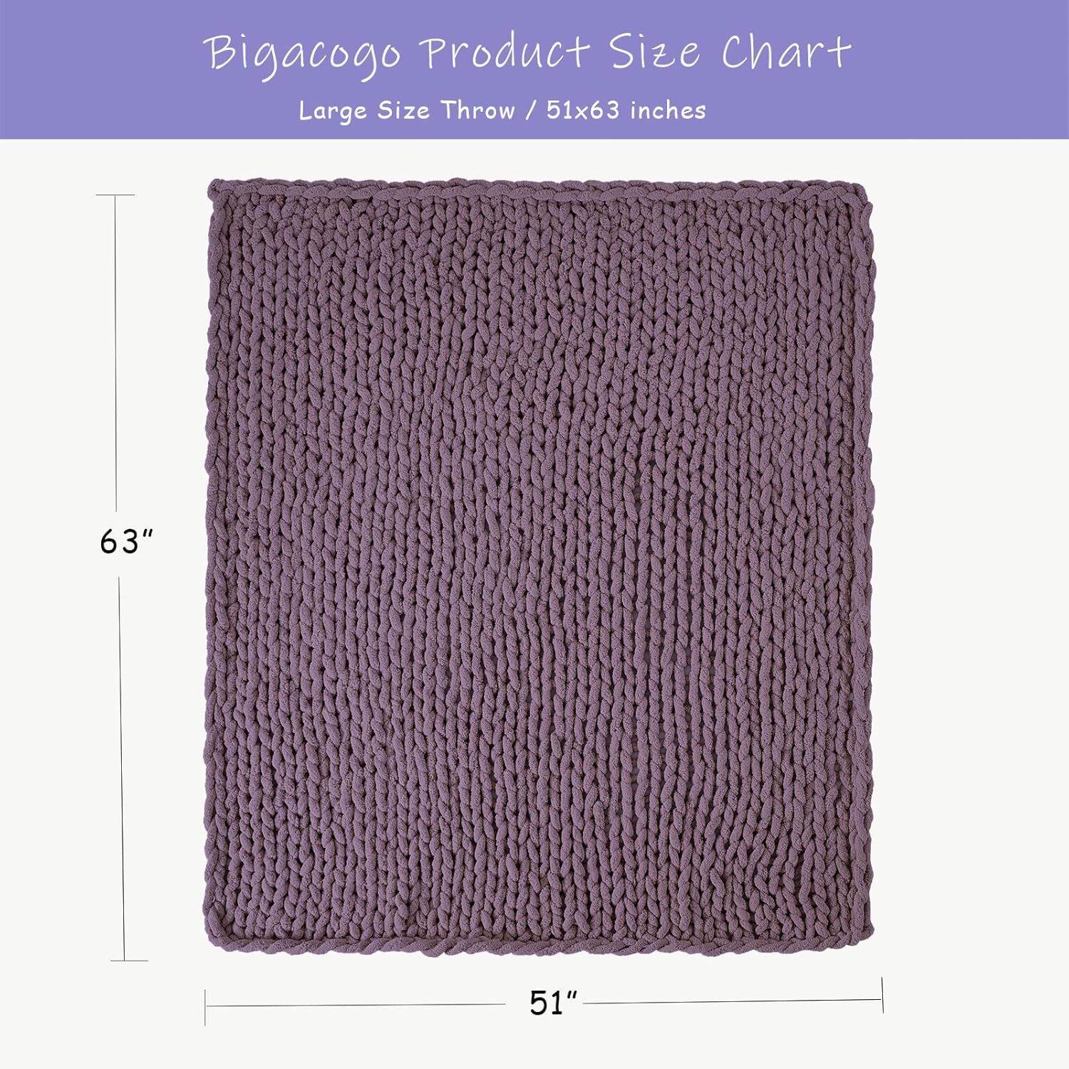 Bigacogo Chunky Knit Throw Blanket for Couch, 51x63 inches, 100% Hand Knitted with Thick Jumbo Chenille Yarn, Cozy Soft Large Rope Knot Cable Crochet Blankets for Sofa Bed Living Room, Winter Grape