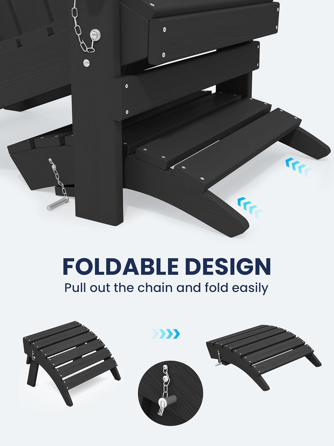 - [Space-Saving Design]: The KINGYES Folding Adirondack Ottoman is designed with a foldable feature, making it compact and easy to store under your chair when not in use. This space-saving innovation is perfect for any outdoor enthusiast.