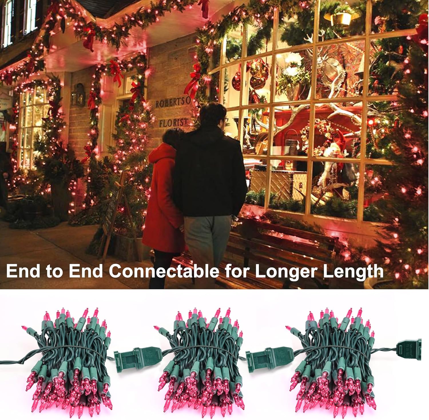 - 300 Counts Pink Mini Lights: Old-fashion pink incandescent Christmas light set, creates a festive atmosphere, celebrates Christmas, New Year, Birthdays and special holidays, cast a magical look to your house and garden, and impress your family friends, and relatives with this easy to set up!