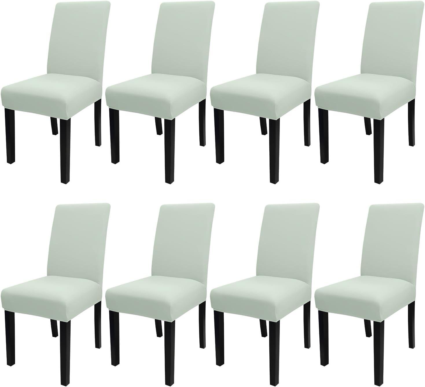 JQinHome Smoke Green Chair Covers for Dining Room Set of 8, High Stretch Removable Washable Parsons Chair Slipcover for Home Party Hotel Wedding Ceremony (8PCS, Smoke Green)
