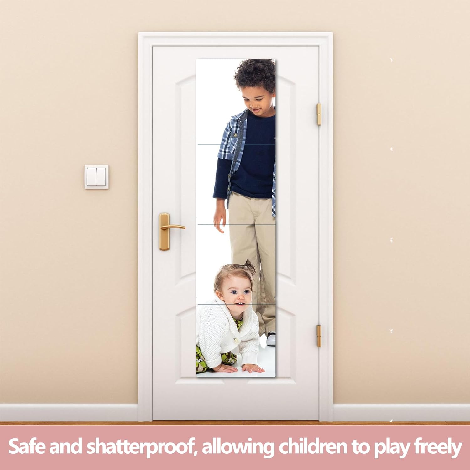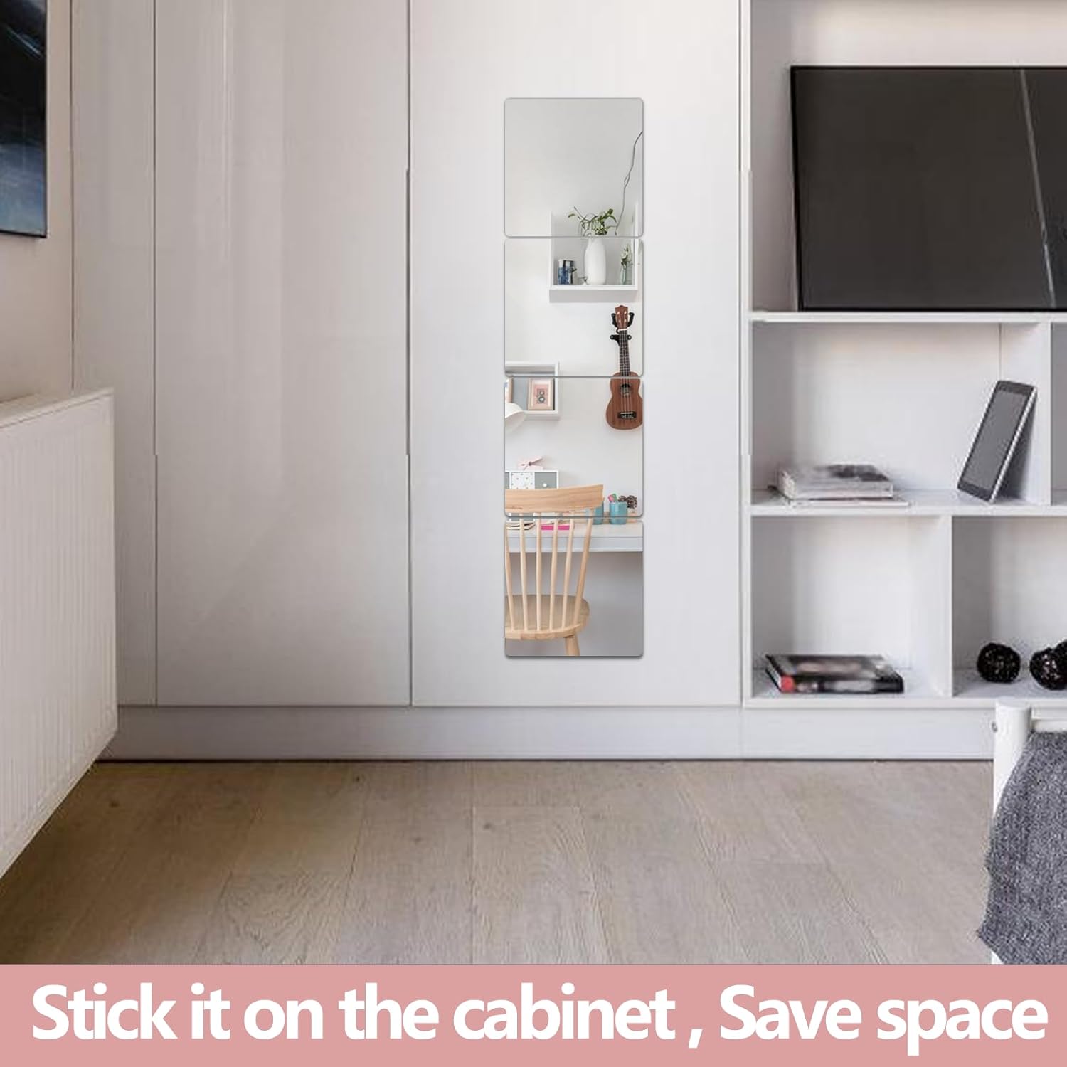 Unbreakable Full Length Wall Mirror,The Door Mirror,4Pack 16''x16'',Acrylic Kids Shatterproof Plexiglass Long Mirrors for Bedroom Closet,Children Non Glass Stick on Mirrors