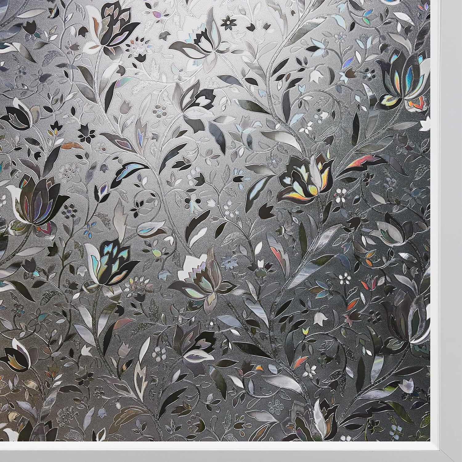 - UNIQUE TULIP PATTERN - Special laser tulip patterns of this window film creates a visual effect like rainbow by strong light and brings unique decoration on your glass. It is an excellent way to add colors to your room without the need for traditional stained glass windows