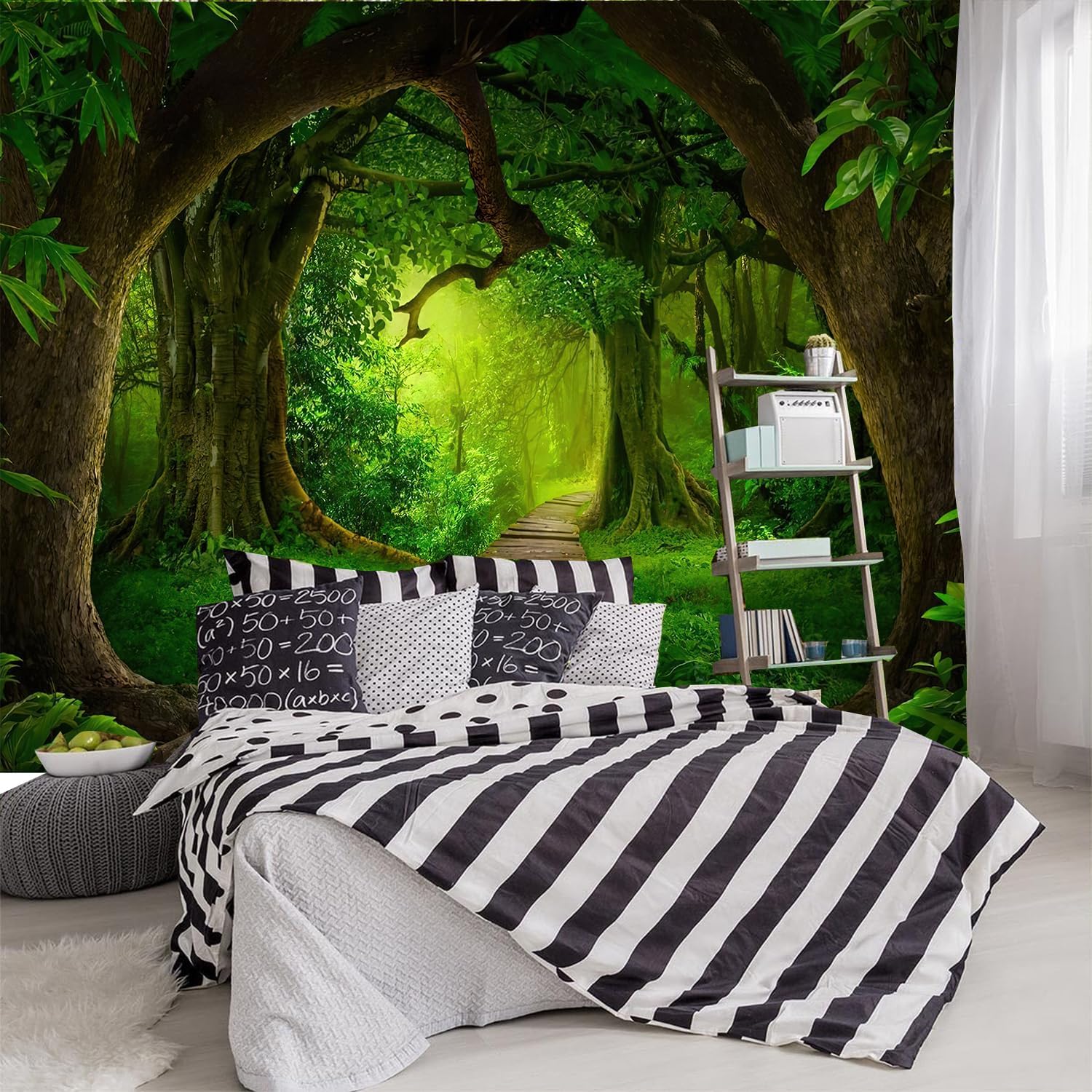 - ★AMAZING MATERIAL:The Green Misty Cave tapestry is made of light-weight polyester. You can easily use regular tacks to bind it at the position where you want to decorate. It will give you a beautiful view in the room.
