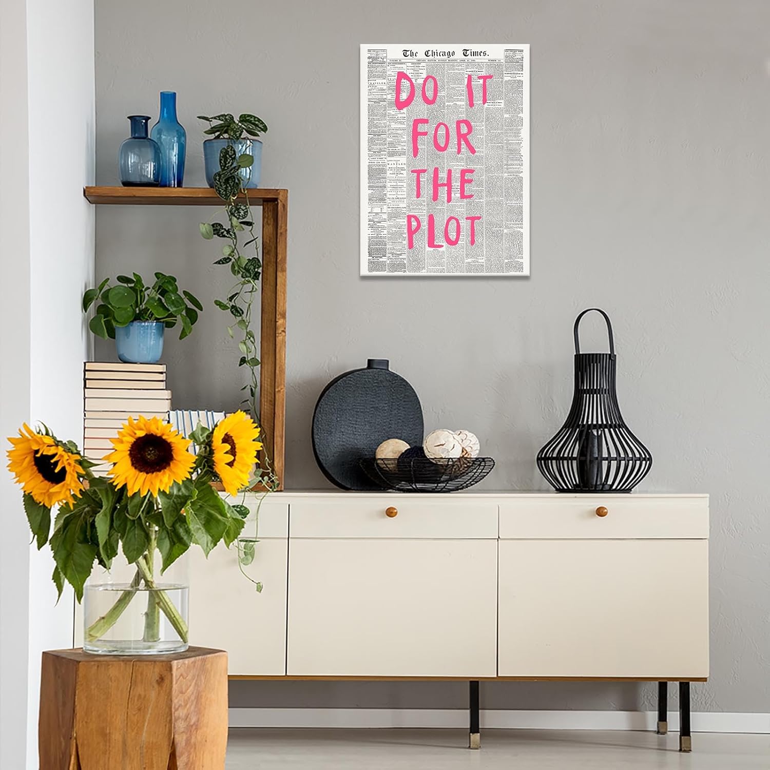 Liyark Retro Black And White Chicago Newspaper Poster Pink Trendy Preppy Apartment Art Motivational Affirmation Do It For The Plot Prints For Home Bedroom Living Room Wall Decor 24x36in Framed