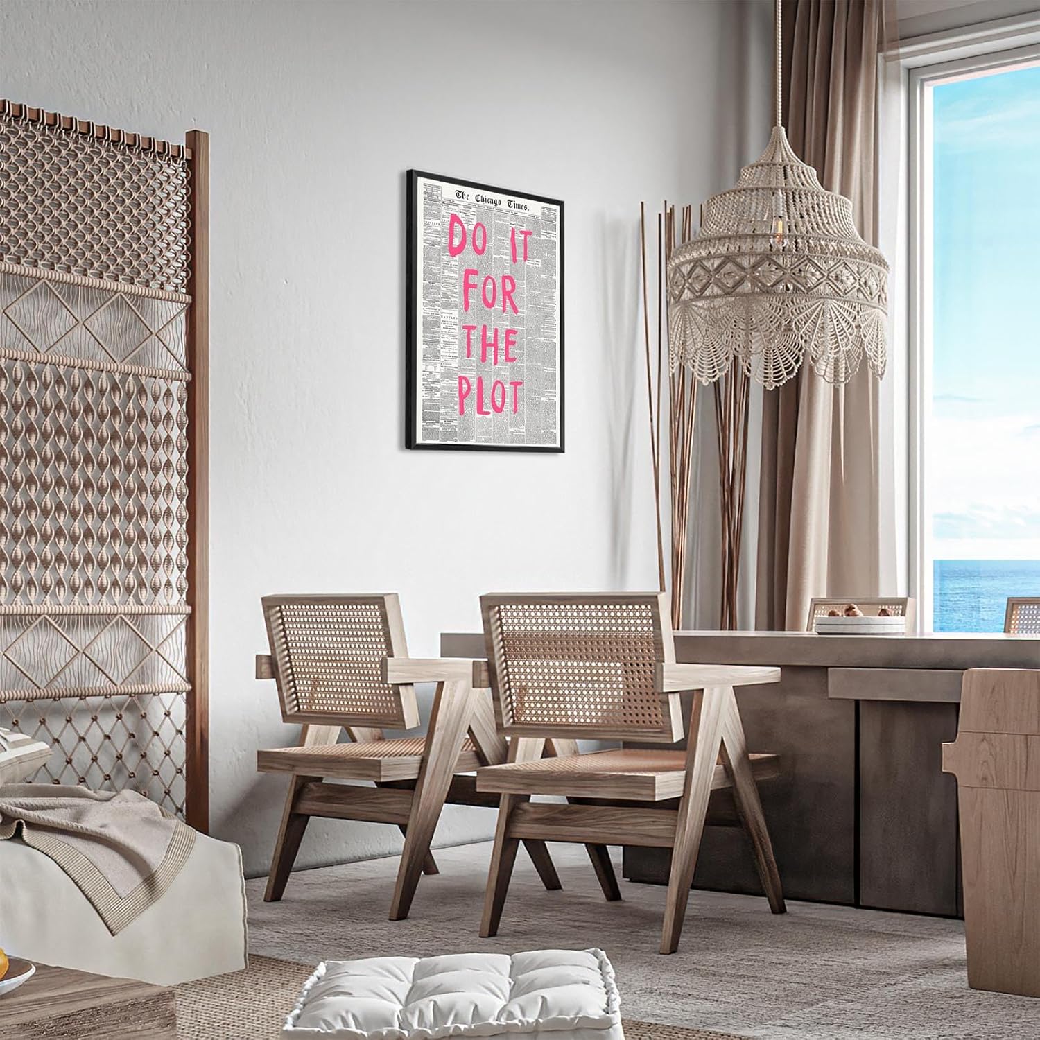 Liyark Retro Black And White Chicago Newspaper Poster Pink Trendy Preppy Apartment Art Motivational Affirmation Do It For The Plot Prints For Home Bedroom Living Room Wall Decor 16x24in Framed