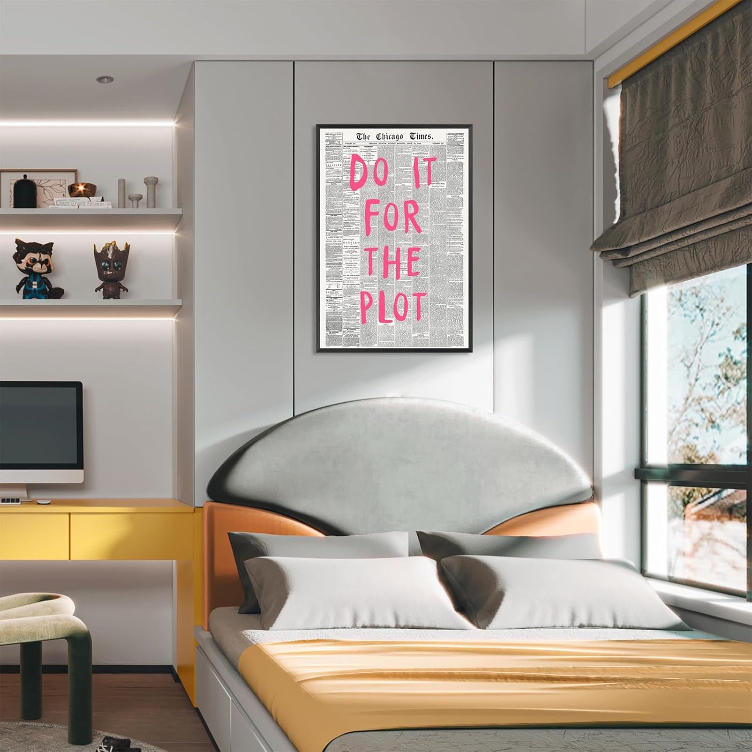 Liyark Retro Black And White Chicago Newspaper Poster Pink Trendy Preppy Apartment Art Motivational Affirmation Do It For The Plot Prints For Home Bedroom Living Room Wall Decor 24x36in Framed