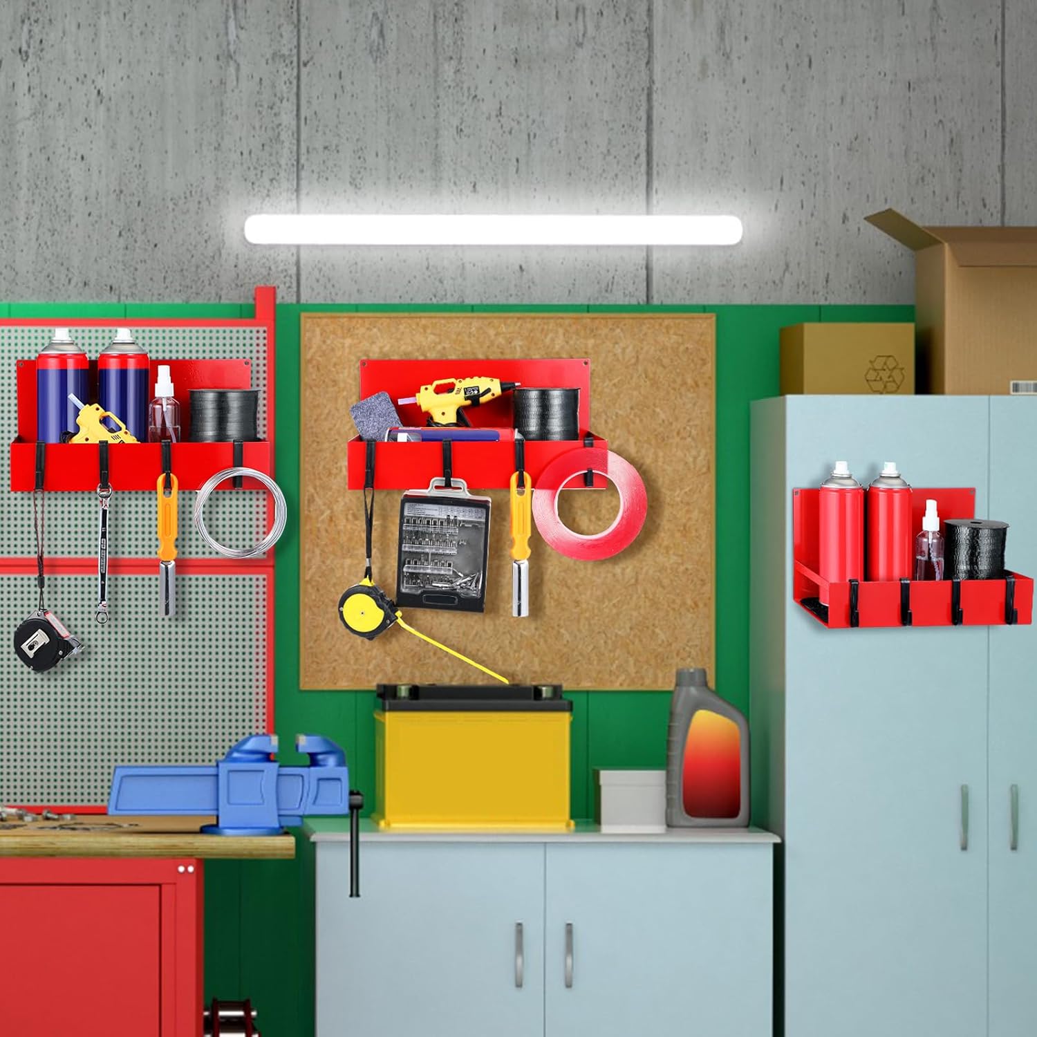 3 Pack Magnetic Garage Organizer Spice Rack for Refrigerator - 20 lb Capacity Shelf Hanging Heavy Duty Fridge Side for Organize Garage Tools, Red