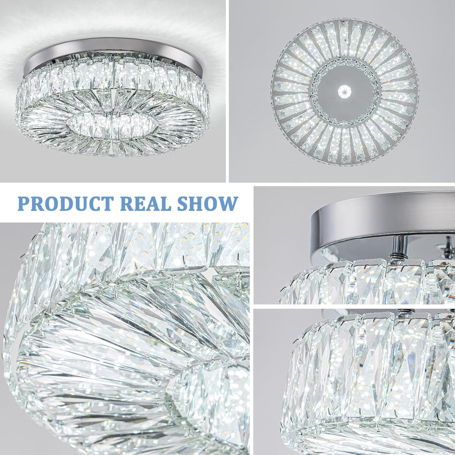 - -3-Sided Crystal Chandelier: this 3-sided crystal chandelier ceiling light is made of K9 crystals and polished sturdy stainless steel, featuring with polular round shape and 3-sided crystals, you can see the lights coming out from every angles, you can also enjoy the bright lighting and luxury decoration at the same time .
