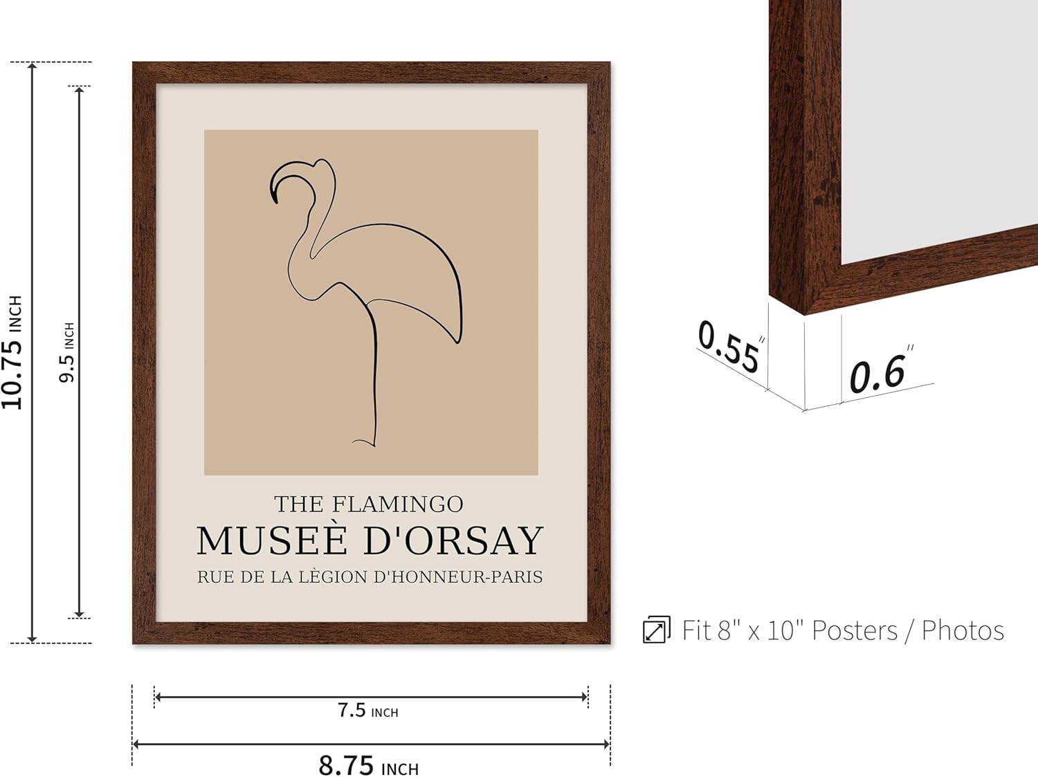 Poster Master Vintage Poster - Retro Minimalist Print - Gift for Artist, Housewarming - Flamingo, Line Drawing, Sketch, Abstract - Wall Decor for Living Room, Bedroom, 8x10 Brown Framed