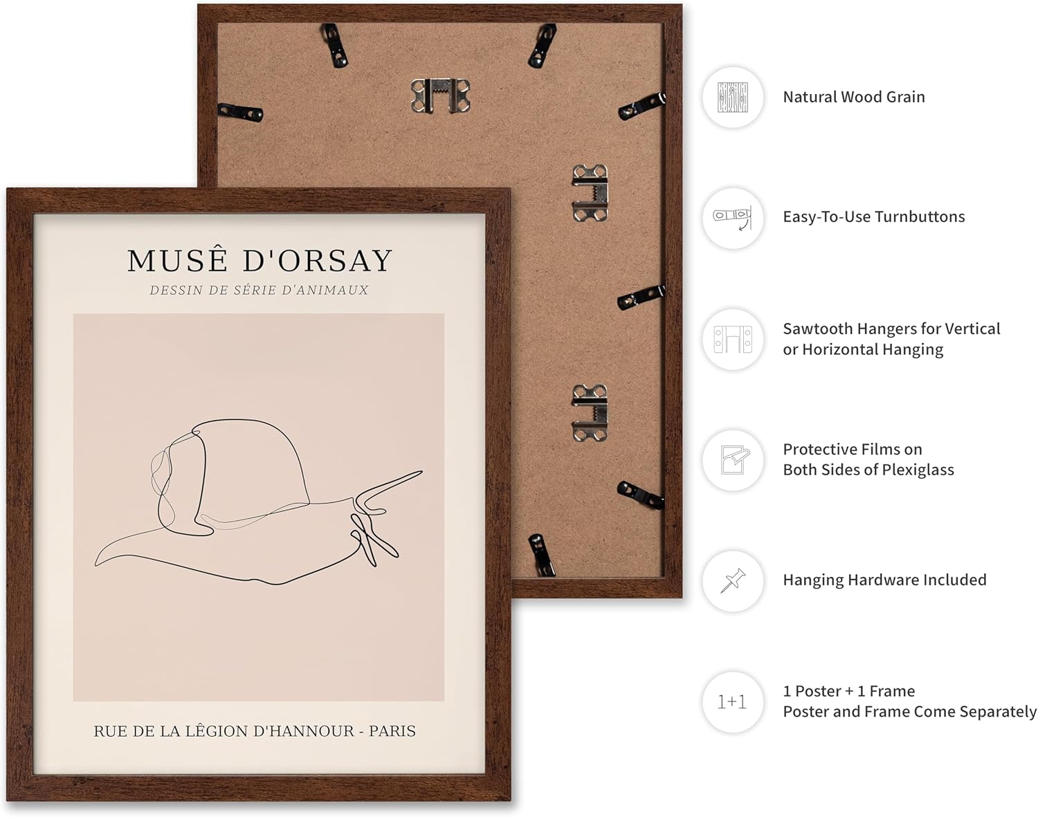 Poster Master Vintage Poster - Retro One Line Snail Drawing Print - Snail Line Art - Minimal Gift for Men, Women, Animal Lover - Abstract Wall Decor for Home, Office, 16x20 Brown Framed
