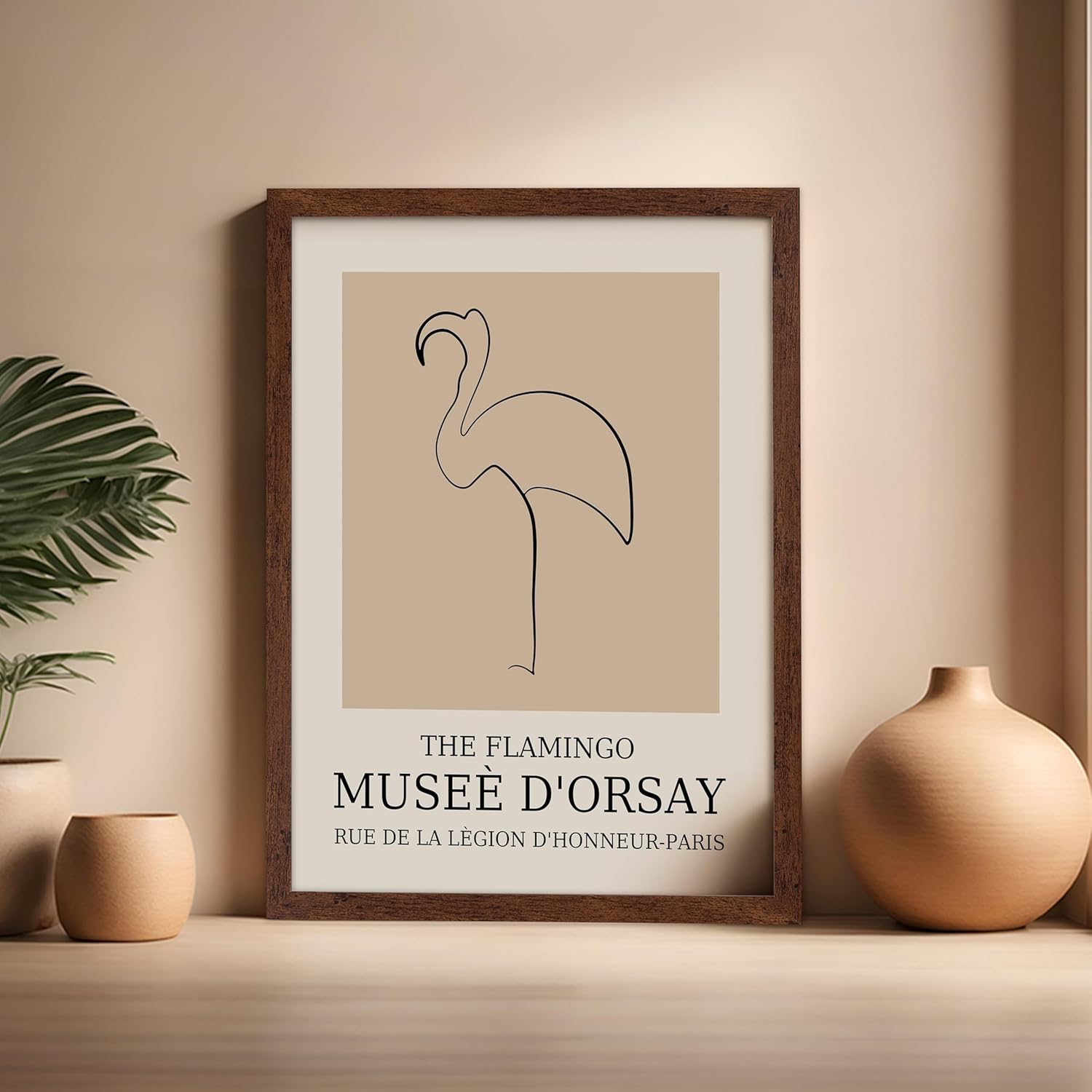 Poster Master Vintage Poster - Retro Minimalist Print - Gift for Artist, Housewarming - Flamingo, Line Drawing, Sketch, Abstract - Wall Decor for Living Room, Bedroom, 16x20 Brown Framed