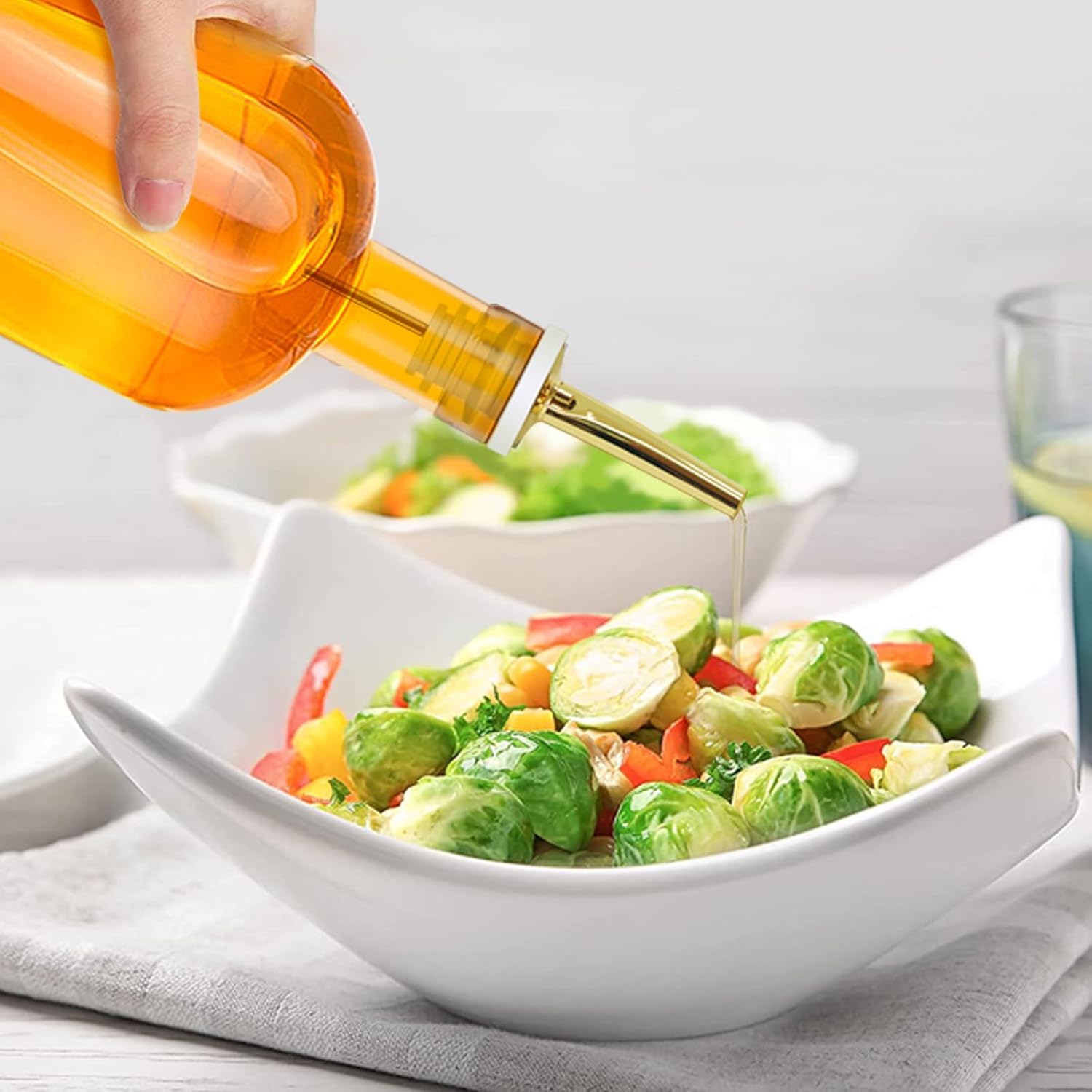 - [Easy to use] Perfect design and high transparent bottle body, high-grade texture. Stainless steel Pourers will not drip oil, oil hanging, avoid waste. Waterproof label can be written arbitrarily. The funnel is convenient for filling oil
