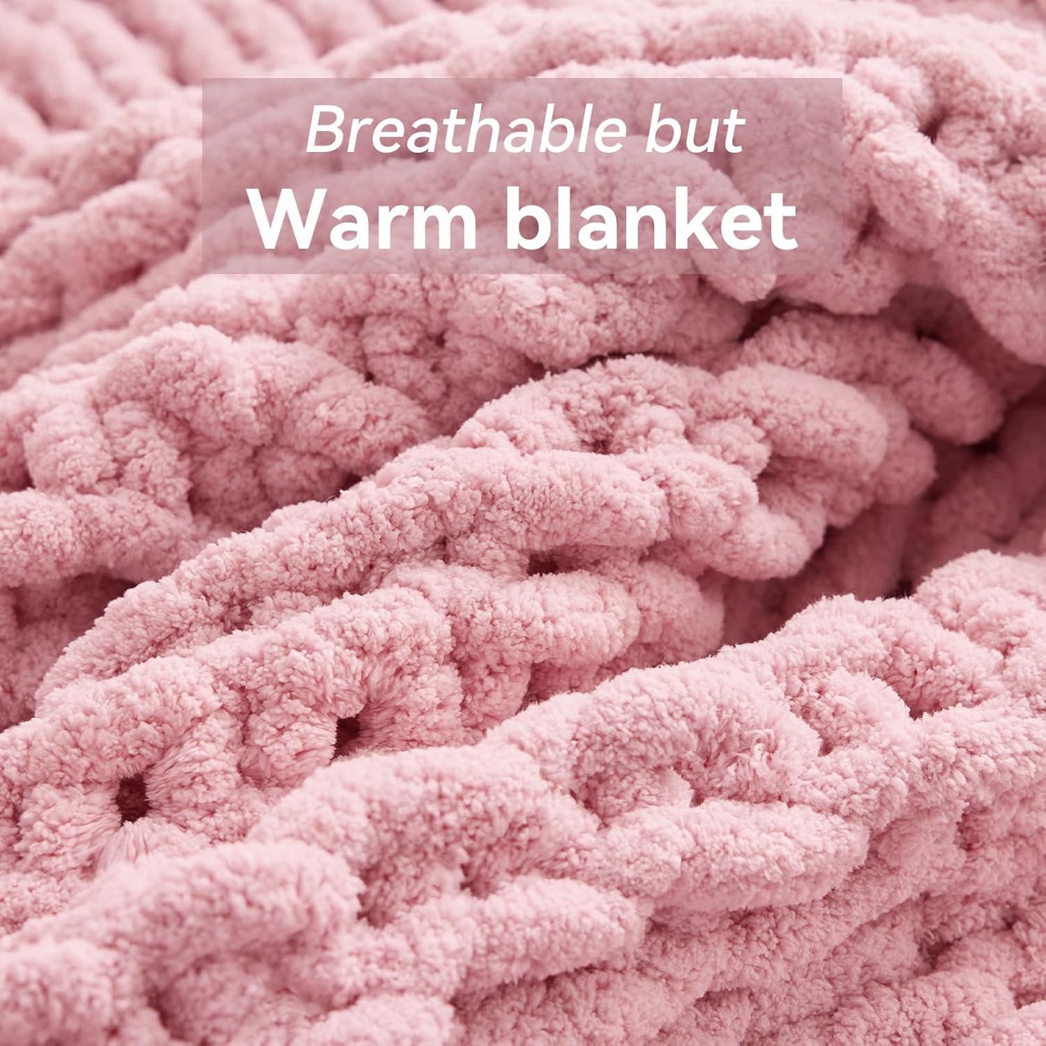 Chunky Knit Throw Blanket, 40''*50'' Knitted Throw Chenille Yarn for Bed Couch, Handmade Light Pink Crochet Big Thick Blanket, Machine Washable Cute Comfy Blanket for Home Decor