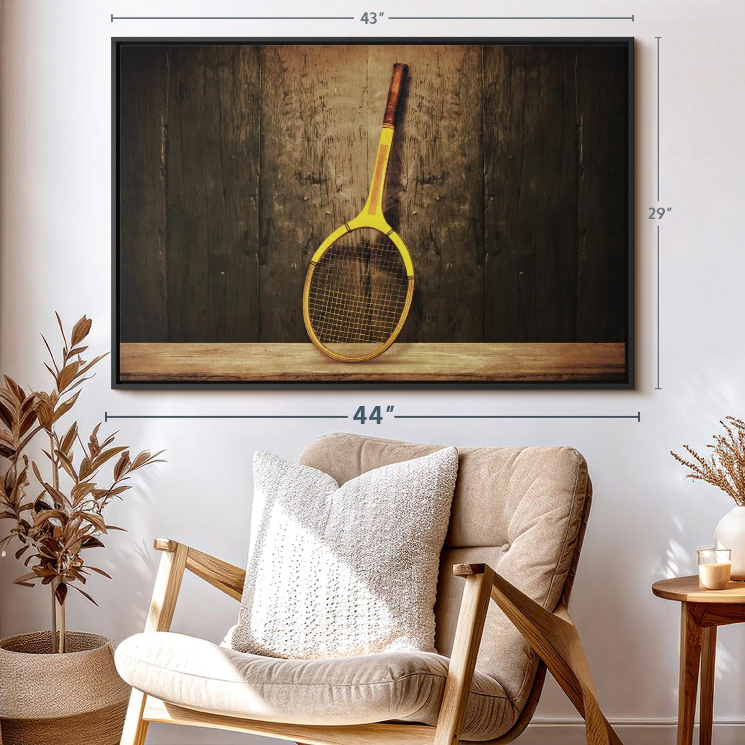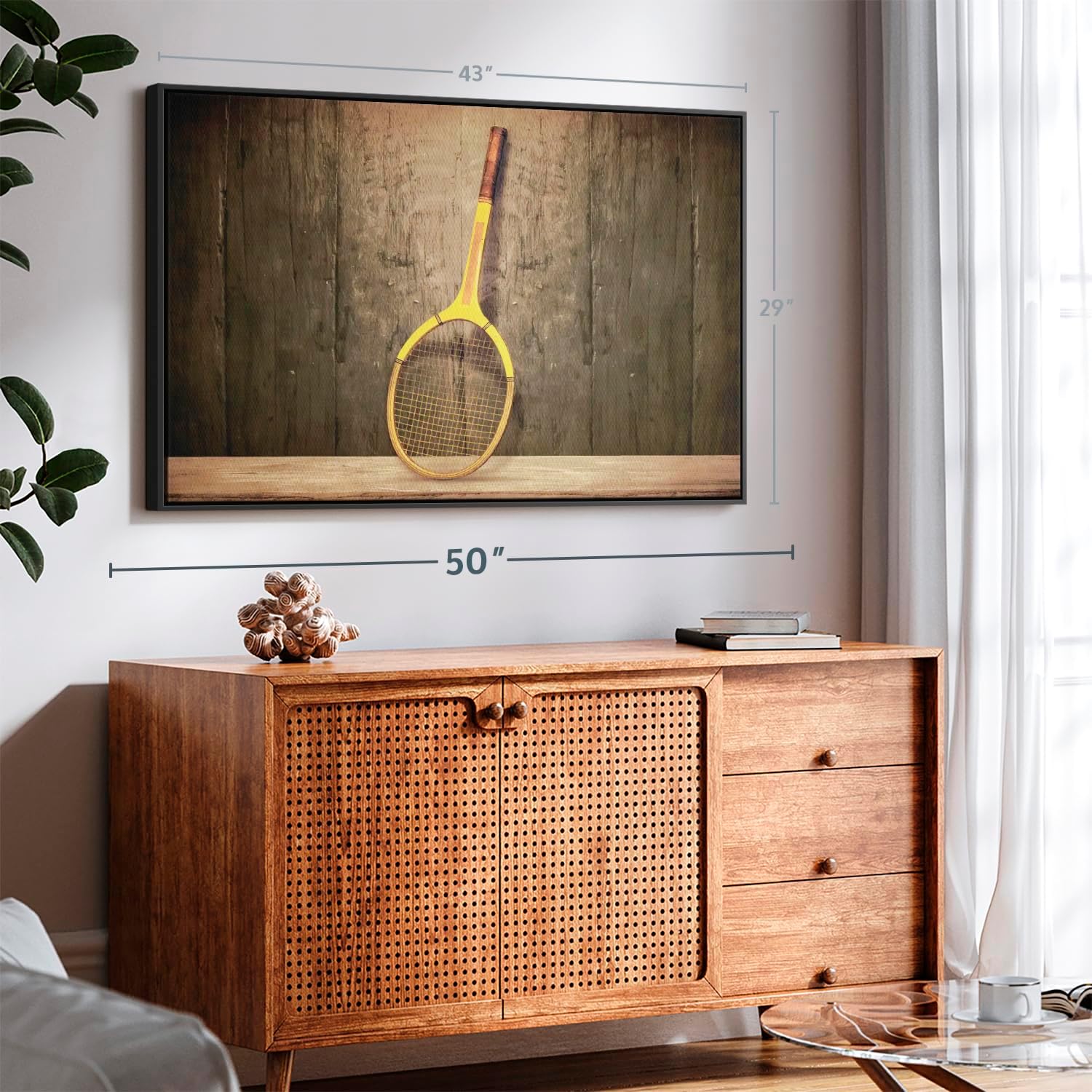 ElephantStock Vintage Tennis Racket Wall Art - Horizontal Framed Canvas - 1-Piece Living Room Wall Decor - Photography Sports Canvas Print - Brown and Black Decor for Wall - 43" X 29"