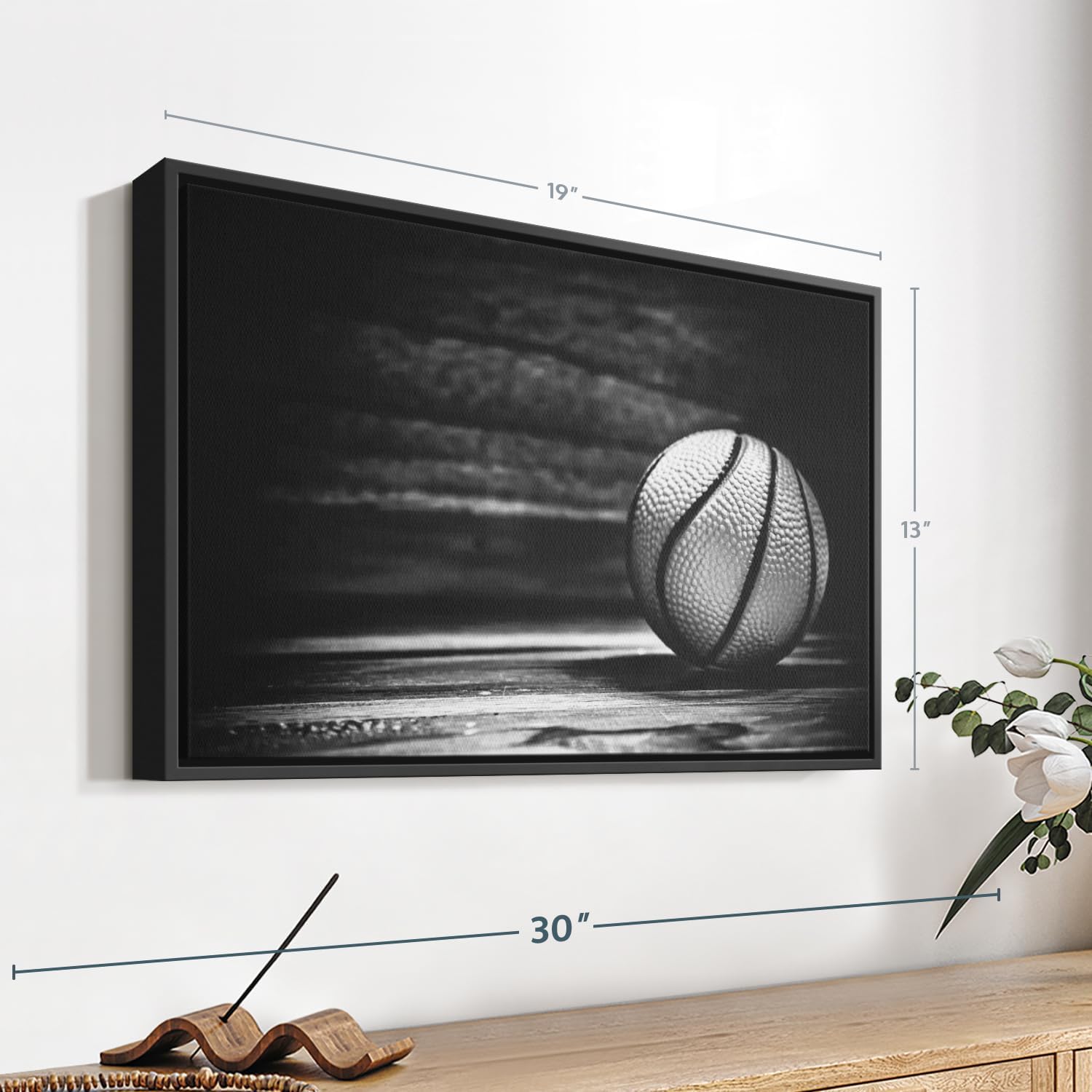 ElephantStock Basketball Wall Art - Horizontal Framed Canvas - 1-Piece Hallway Wall Decor - Photography sports Canvas Print - Black and Gray Decor for Wall - 19" X 13"