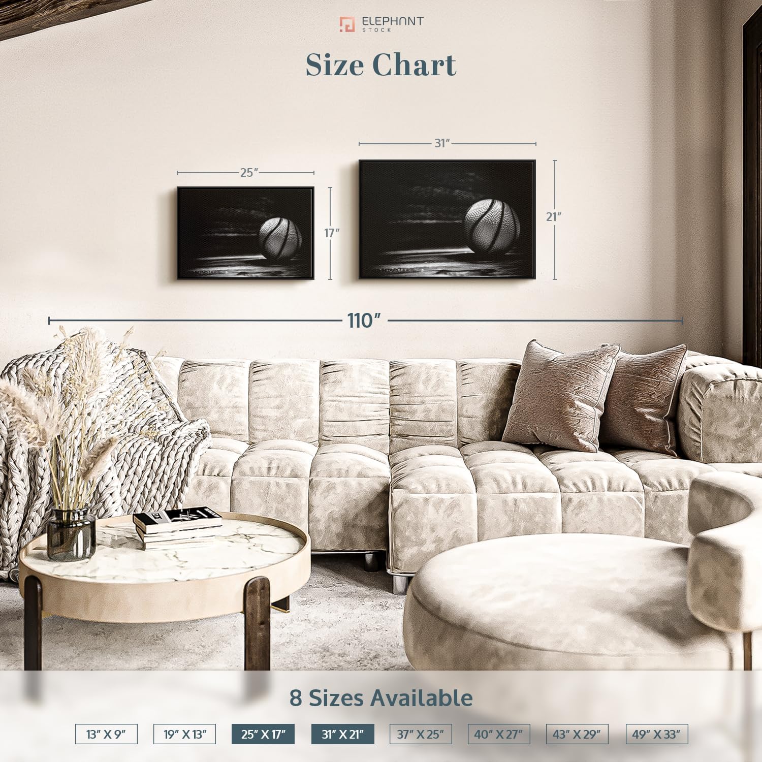 ElephantStock Basketball Wall Art - Horizontal Framed Canvas - 1-Piece Hallway Wall Decor - Photography sports Canvas Print - Black and Gray Decor for Wall - 25" X 17"