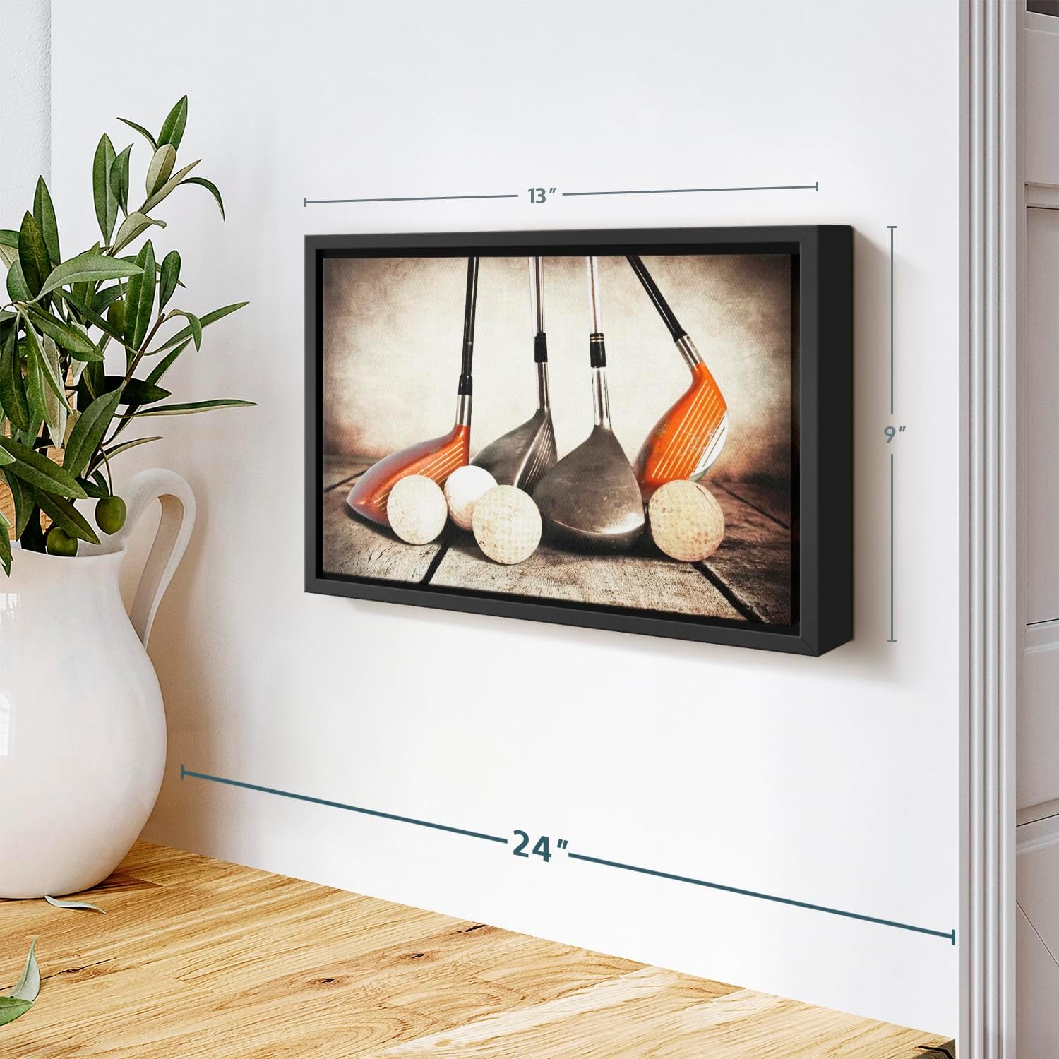 ElephantStock Golf Sets Wall Art - Horizontal Framed Canvas - 1-Piece Mancave Wall Decor - Photography Sports Canvas Print - Yellow and Brown Decor for Wall - 13" X 9"