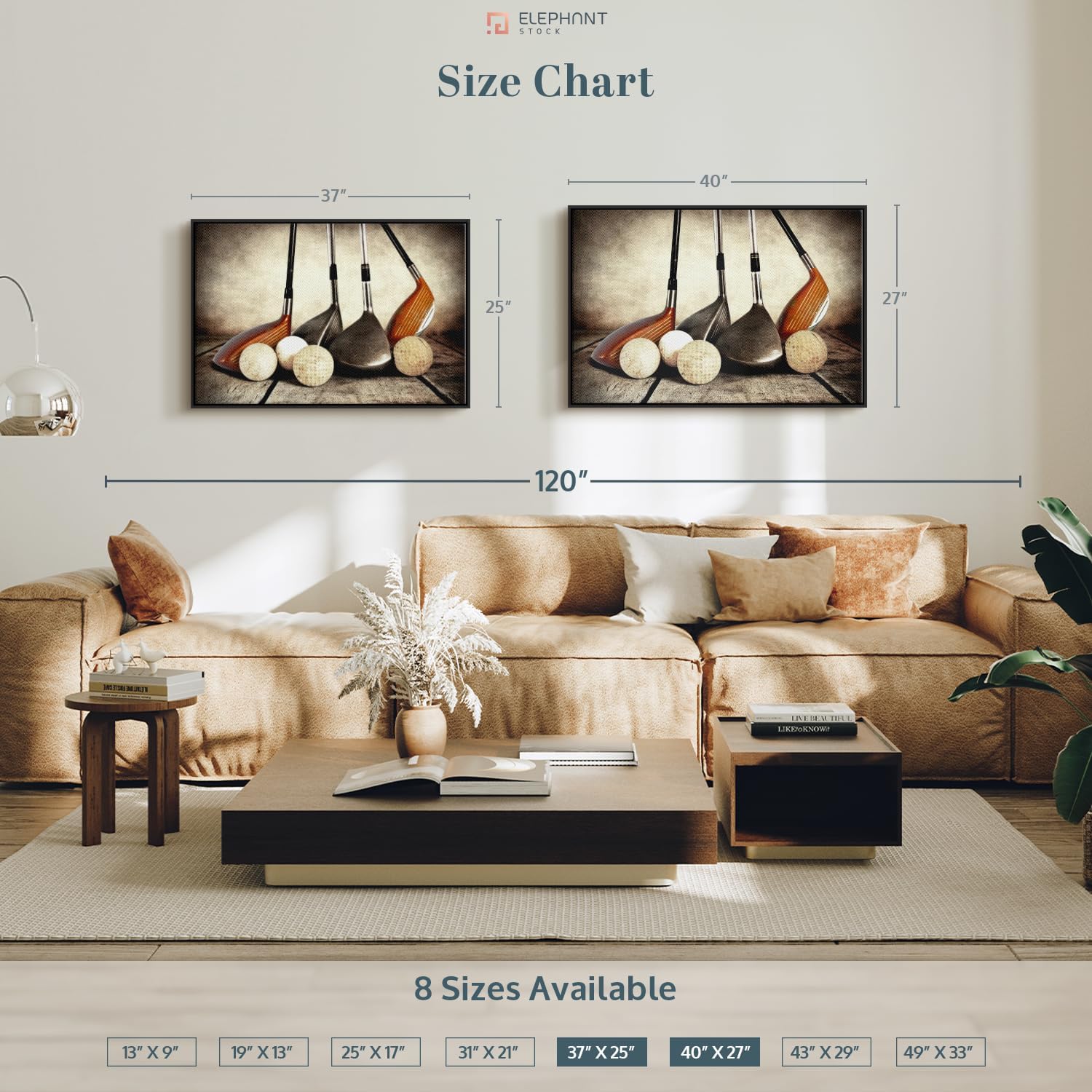 - Durable Canvas Features - Our long-lasting other sports 1-Piece canvas is made from a non-fading UV and Humidity-resistant 330 GSM Polyester Canvas. This Golf Sets canvas can be used as a masculine mancave wall art.