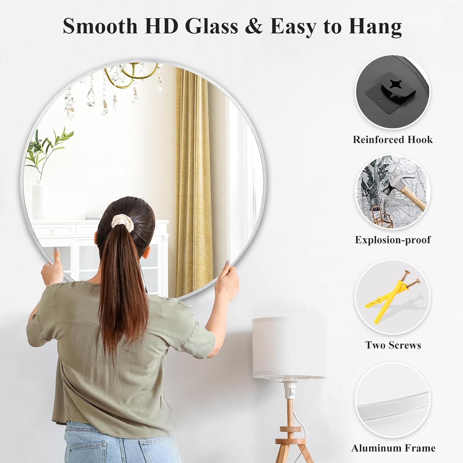 Fabuday Silver Round Mirror 30 Inch - Big Circle Mirror for Bathroom, Living Room, Hallway, Entryway, Matte Aluminum Frame Circular Mirrors for Wall Decor