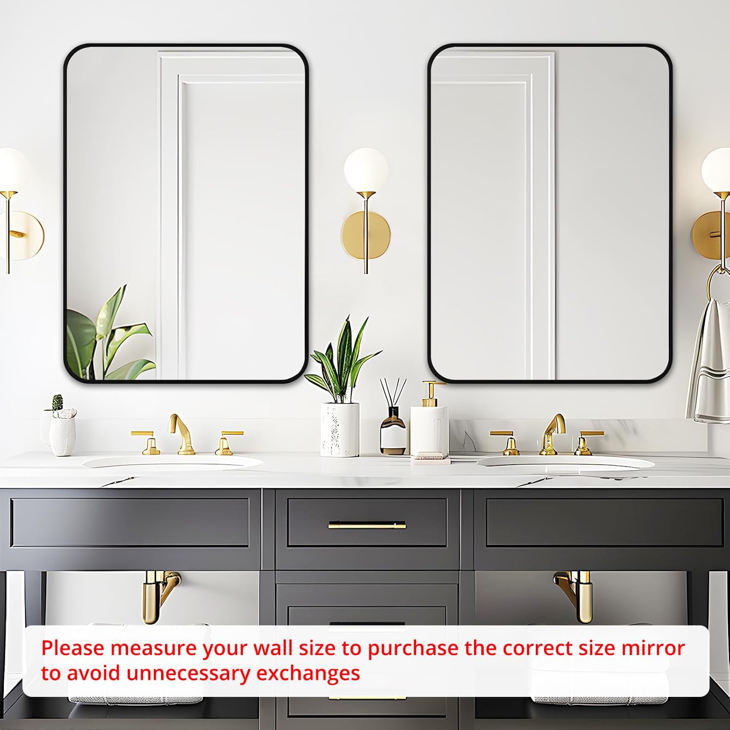 Fabuday Black Bathroom Mirror for Over Sink - 20x28 Rounded Rectangle Wall Mirror, Matte Metal Framed Vanity Rectangular Mirrors for Bedroom, Living Room, Entryway Decor, Horizontally/Vertically