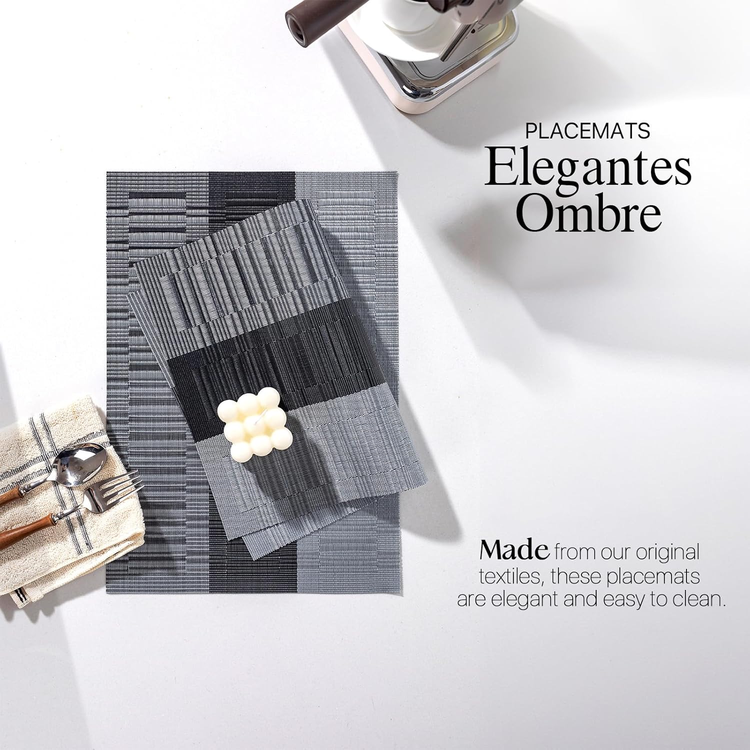 - PERFECT FOR INDOOR AND OUTDOOR:The wipeable placemat is two yarns over two, resulting in a quieter,less textural surface.The neutral color scheme and the classic size (about 12*17 inch)makes the whole table elegant and stylish full of texture!
