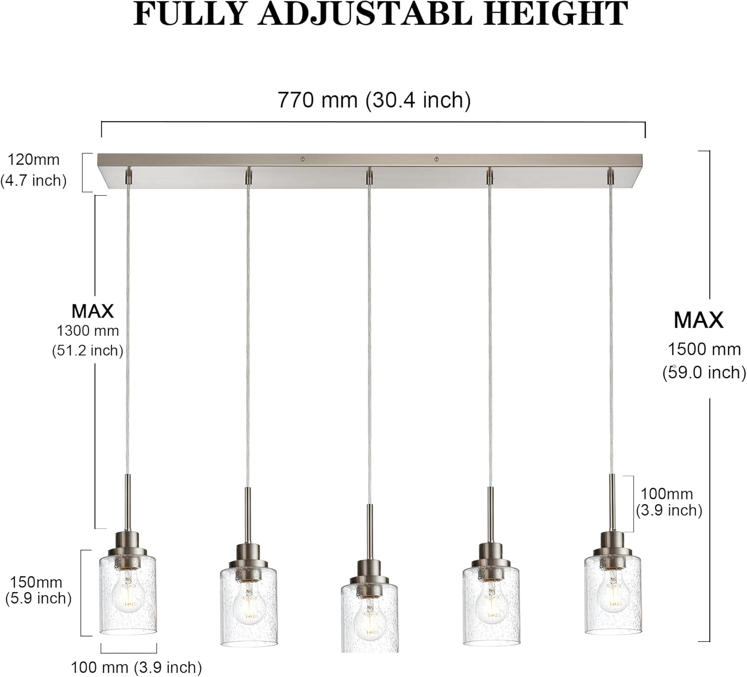Lighting Contemporary Brushed Nickel Linear Chandelier Pendant Light 5 Lights Clear Seeded Glass Farmhouse Pendant Lighting Modern Dining Room Light Fixture for Living Room Kitchen Island
