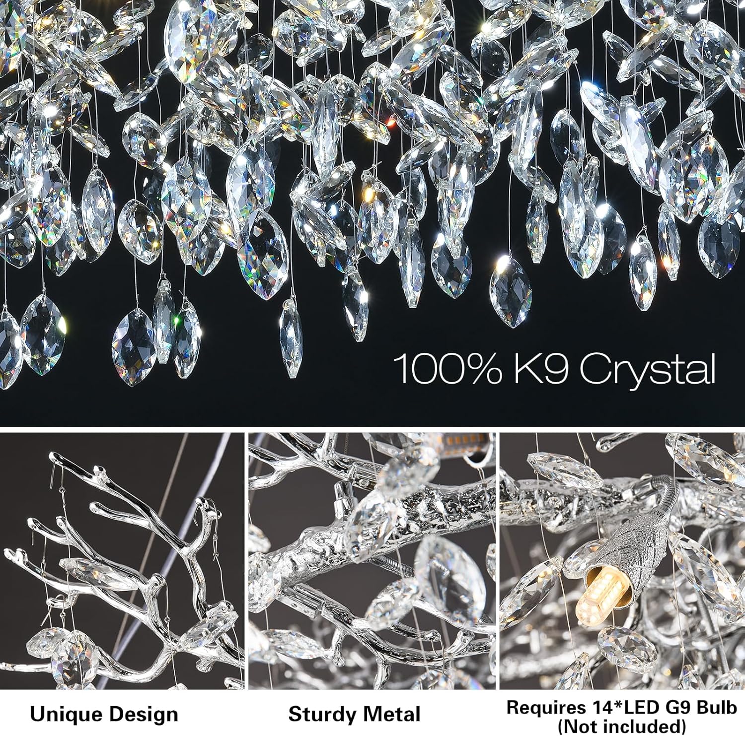 - 【Modern Crystal Chandelier】Transform your living space into a captivating masterpiece with our Elegant Crystal Tree Branches Chandelier. This stunning chandelier is designed to impress, featuring a unique tree branch-inspired design adorned with glistening crystals that cast a mesmerizing play of light and shadow.
