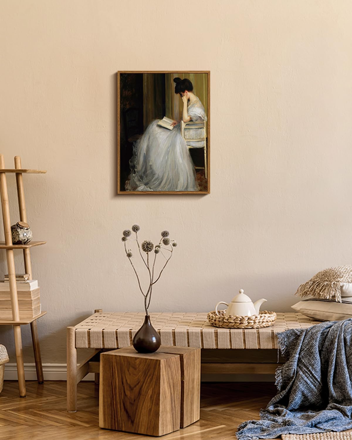 - VINTAGE OIL PAINTING: The portrait wall art is a beautifully executed painting that combines realism with subtle impressionistic touches to create a serene and intimate scene. The retro frame enhances the artwork's elegance, making it a striking and valued piece. The wall decor painting's focus on a solitary woman reading in a quiet, warmly lit space evokes themes of contemplation, solitude, and intellectual engagement, making it a timeless and evocative work of art.