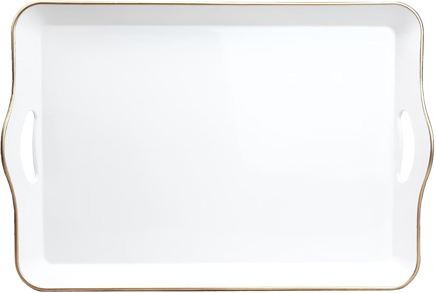 Spsyrine White Decorative Serving Tray with Handles, Elegant Plastic Coffee Table Tray for Ottoman, Living Room, Home Decor
