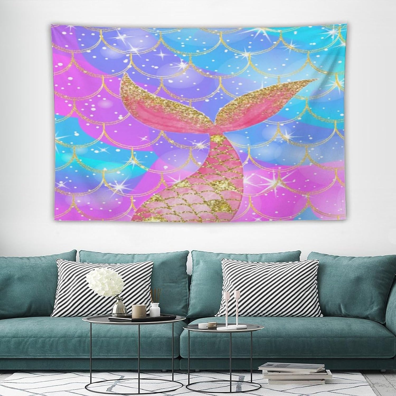 HZOHNAGO Mermaid Scales Tapestry Colorful Shiny Scales Mermaid Tail Pattern Printed Wall Tapestry Wall Hanging for Bedroom Living Room Dorm 60" W x 40" H