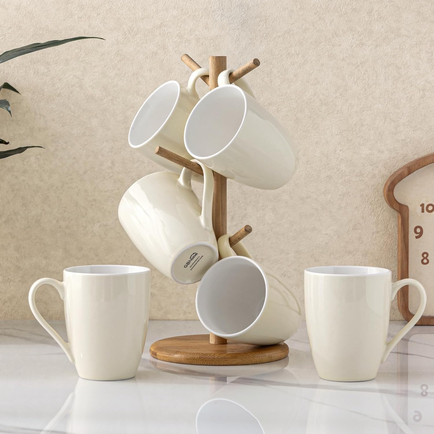 GBHOME 16oz Coffee Mugs Set of 6, Large Ceramic Coffee Mugs for Man, Woman, Dad, Mom, Modern Coffee Mugs Set with handle for Tea/Latte/Cappuccino/Milk/Cocoa. Dishwasher&Microwave Safe,Beige