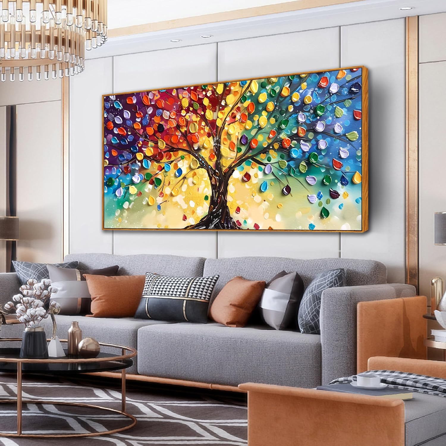 - 【HI-Q MATERIAL】 High quality, HD prints on premium canvas,fading resistant indoor.Tree pictures wall decor,colorful abstract wall art for living room