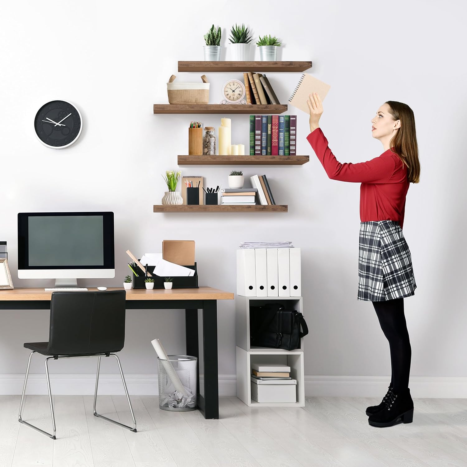 - 24 Inch Floating Shelves for Wall: Display charming showpieces, trophies, photo frames, decorative items, and other prized possessions while offering functional storage with the wooden floating shelves by Sorbus - Enhance home decor, bathroom decor, living room decor - Fill in empty wall space above a desk, fireplace, entryway, vanity, between windows - Each floating shelf measures approximately 23.75" L X 9.25" W
