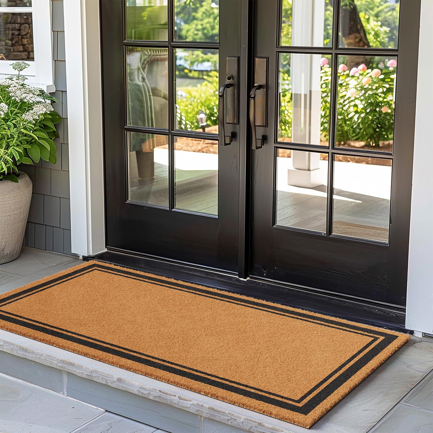 Barnyard Designs Natural Coco Coir Heavy Duty Backing Doormat - Large Cute Non-Slip Front Door Welcome Mat for Outside Entrance or Porch Entry, Brown (36x72, Border)